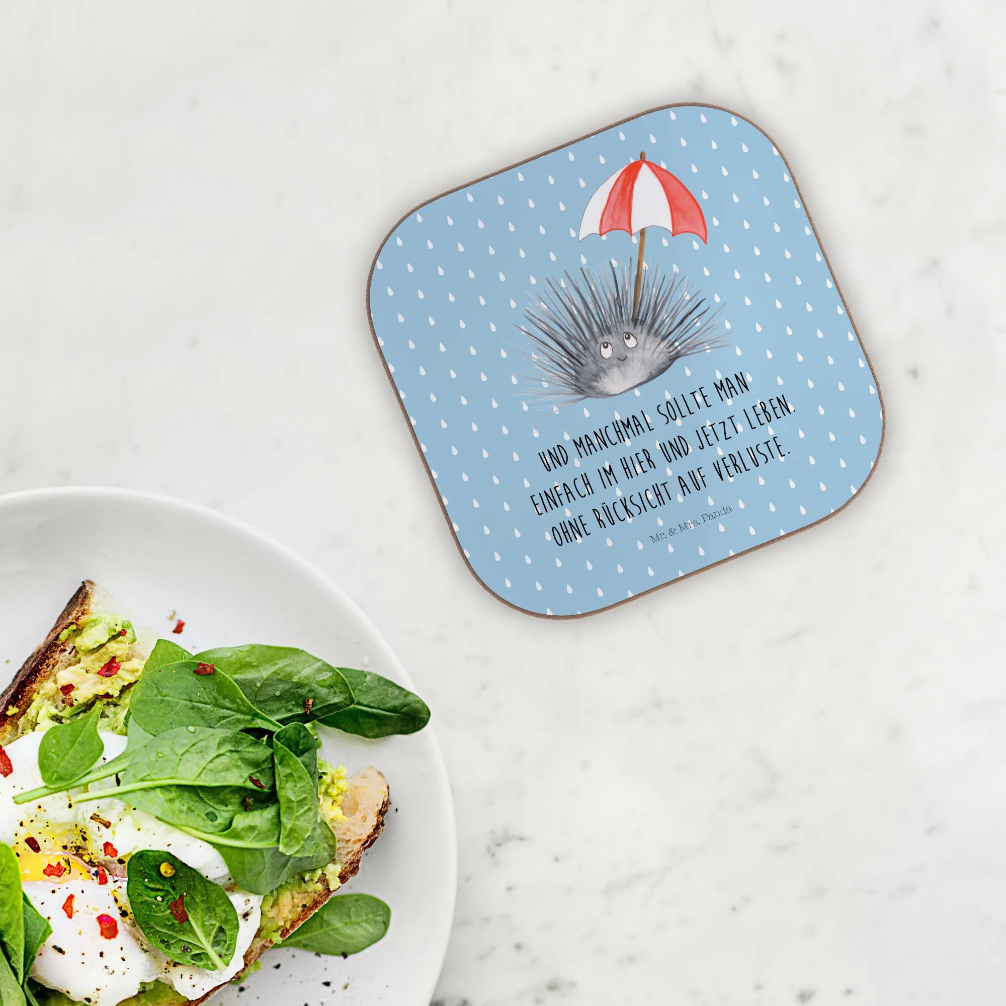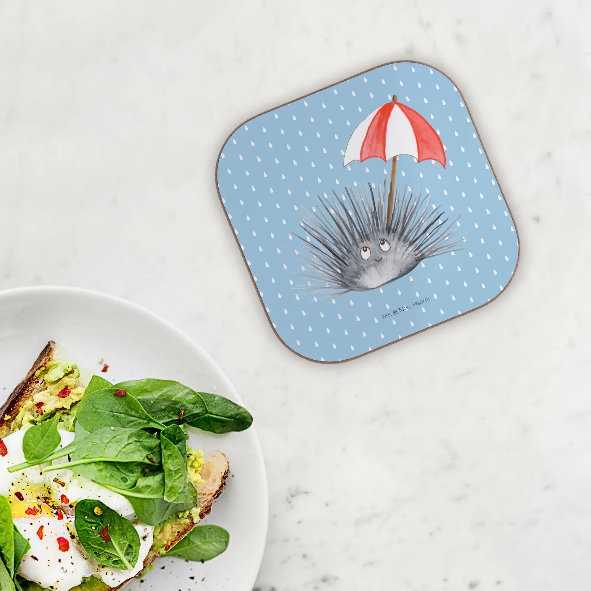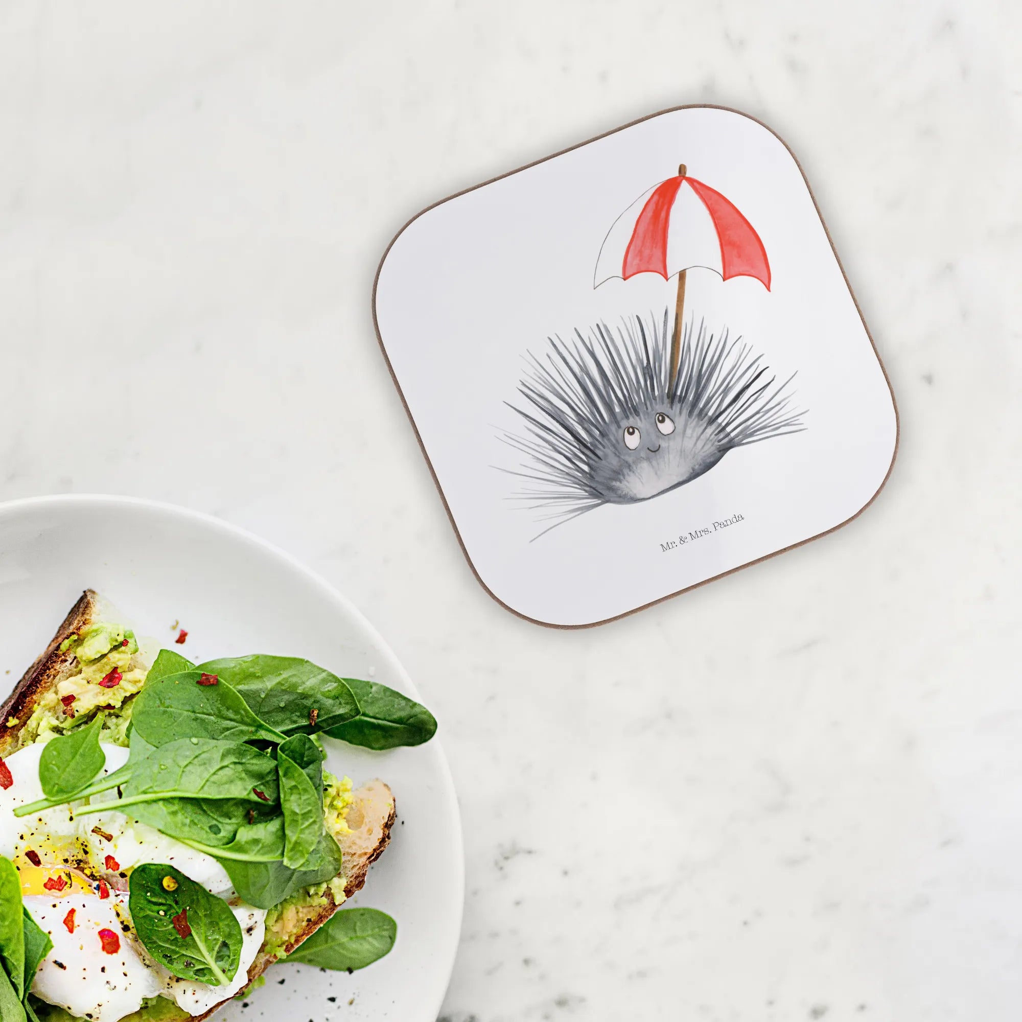 Entdecke den perfekten Untersetzer für dein Zuhause – das quadratische Design aus der Meerestiere Kollektion von Mr. & Mrs. Panda! Dieser wunderschöne Untersetzer zeigt einen niedlichen Seeigel, der mit seinem freundlichen Gesicht und dem roten, gestreiften Schirm sofort gute Laune verbreitet.