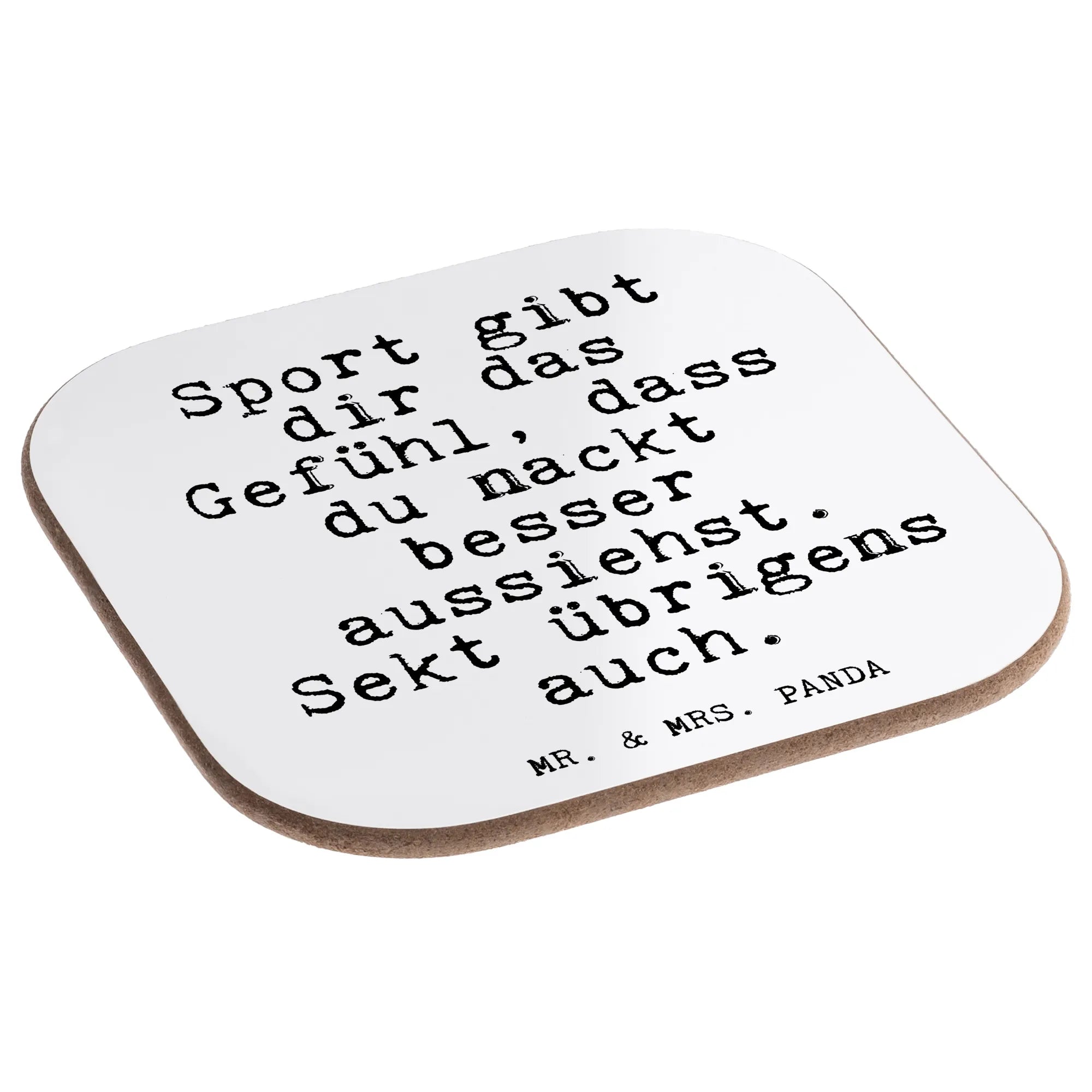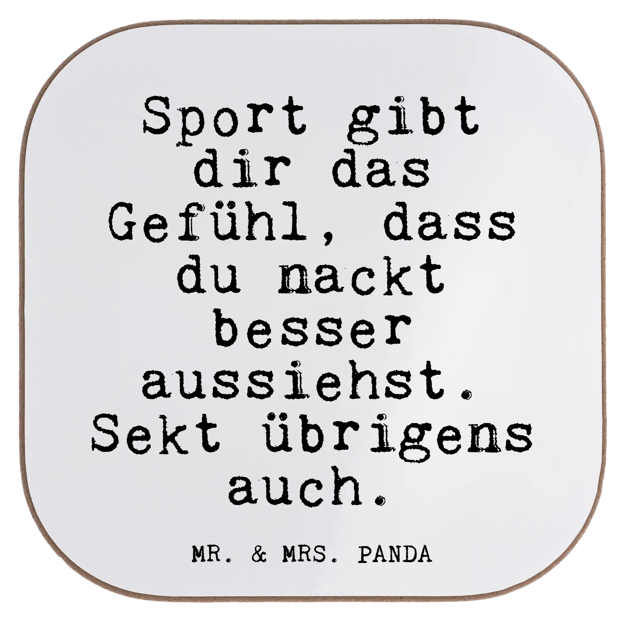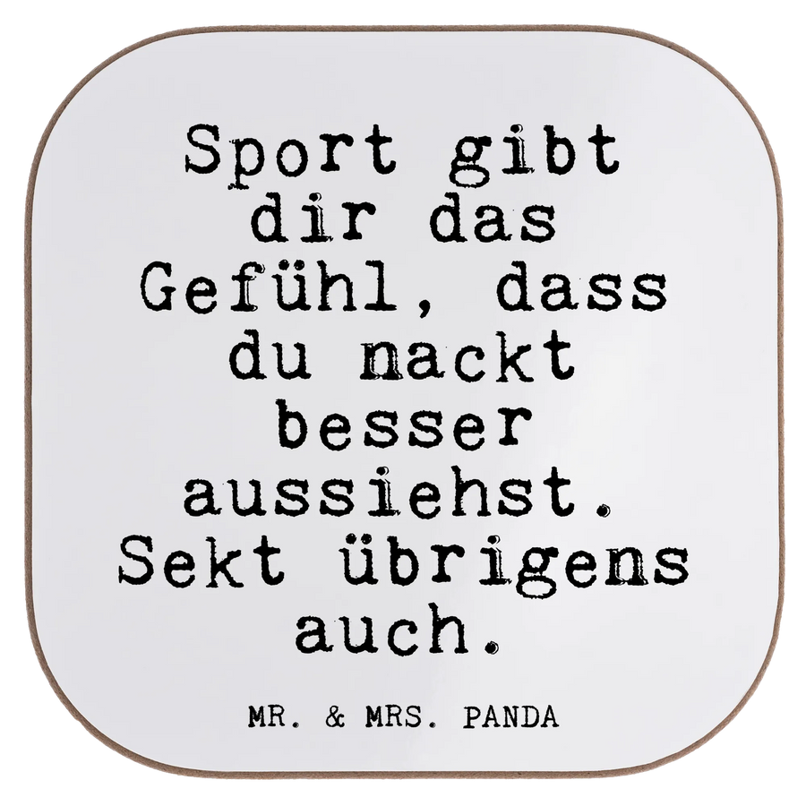 Der bezaubernde Untersetzer "Sport gibt dir das Gefühl, dass du nackt besser aussiehst. Sekt übrigens auch." von Mr. & Mrs. Panda ist das perfekte Geschenk für alle Sportliebhaber und Genießer spritziger Getränke! Dieser einzigartige quadratische Untersetzer aus hochwertigem Hartfaser-Material schützt deinen Tisch vor lästigen Abdrücken, Kratzern und unerwünschten Temperaturen. Mit seinen Maßen von 100 mm x 100 mm passt er nicht nur hervorragend unter Gläser oder Tassen, sondern ist auch ein echter Hingucker auf jedem Tisch.