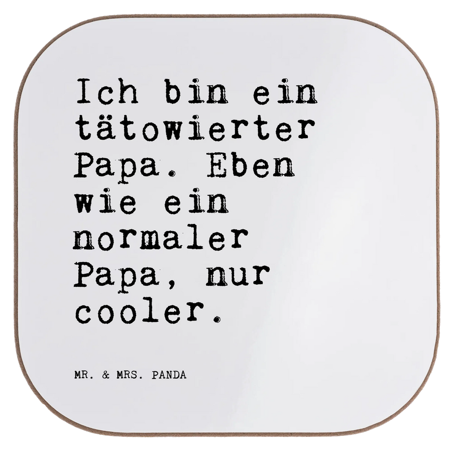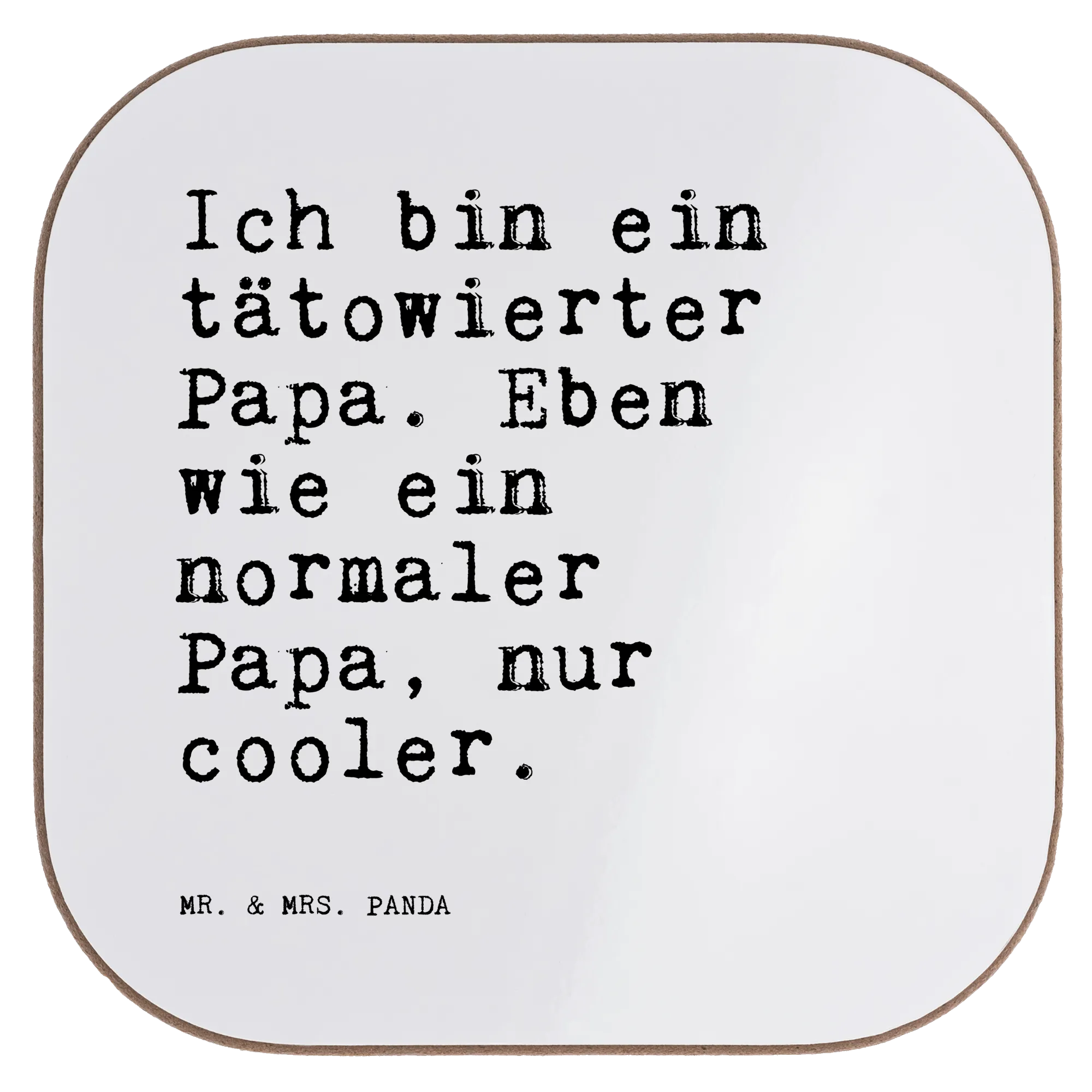 Unser quadratischer Untersetzer von Mr. & Mrs. Panda trägt den frechen Spruch „Ich bin ein tätowierter Papa. Eben wie ein normaler Papa, nur cooler.“ – genau das richtige Geschenk für alle Väter, die Humor und Tattoos lieben. Ob als Geschenk zum Vatertag, Geburtstag oder einfach als kleine Aufmerksamkeit: dieser Untersetzer ist praktisch und hat Persönlichkeit.