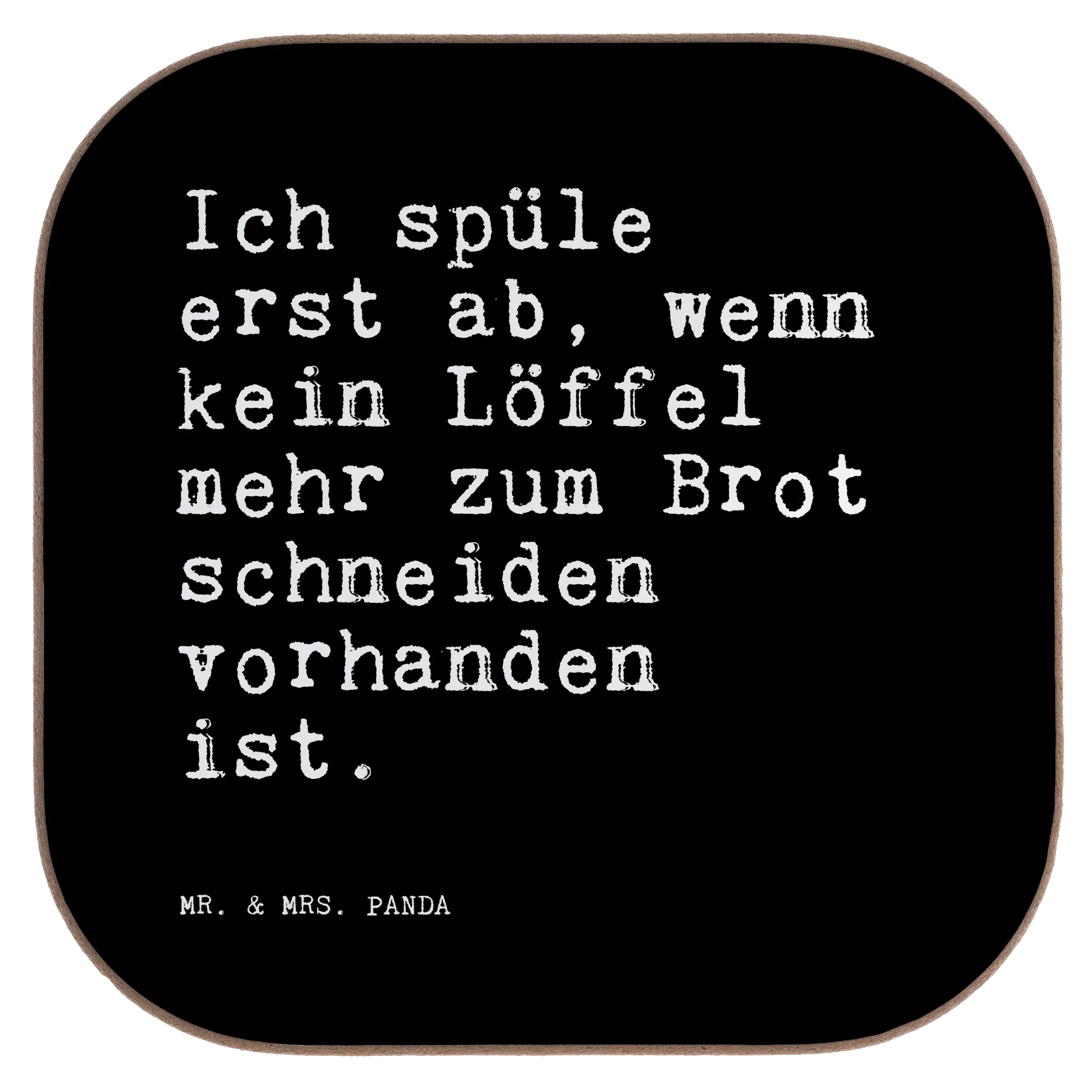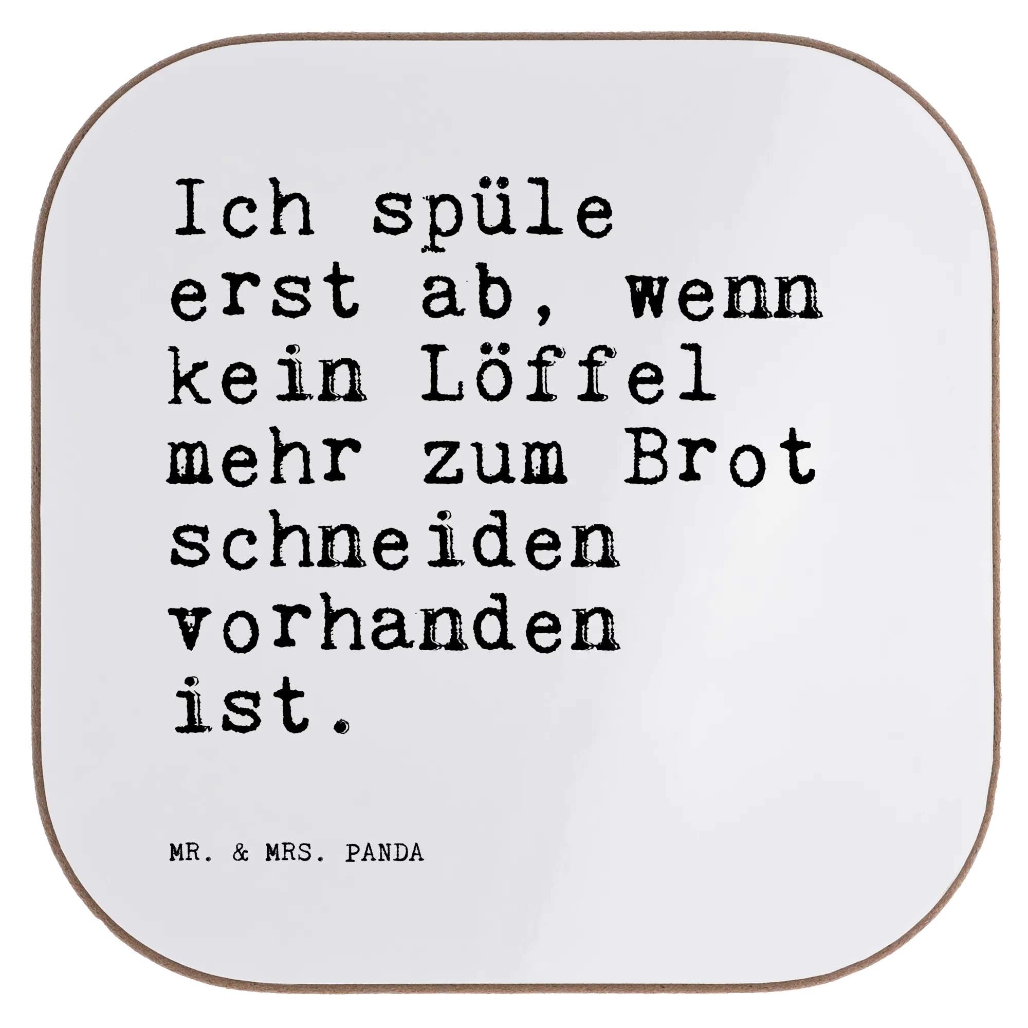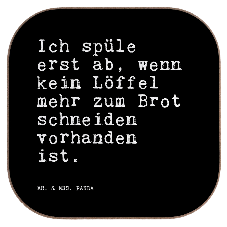 Ein quadratischer Untersetzer voller Humor: Der Untersetzer von Mr. & Mrs. Panda trägt den witzigen Spruch „Ich spüle erst ab, wenn kein Löffel mehr zum Brot schneiden vorhanden ist.“ und bringt gute Laune in jede Küche. Als Glasuntersetzer, Tassenuntersetzer oder Becheruntersetzer schützt er deinen Tisch vor Flecken, Abdrücken und Hitze – ideal für Kaffee, Tee, Wein oder Bier.