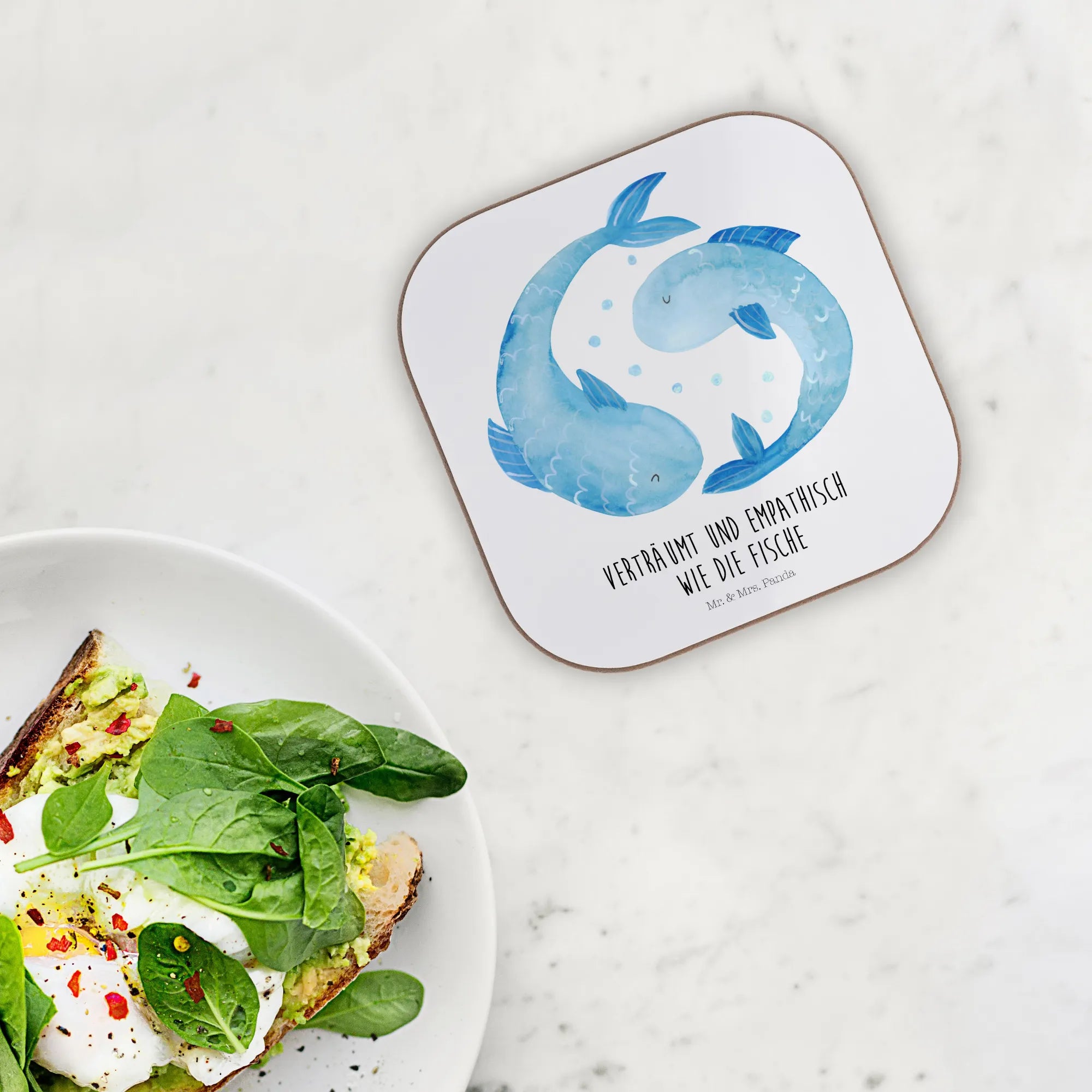 Entdecke die wunderbaren Untersetzer aus der Sternzeichen Kollektion von Mr. & Mrs. Panda – speziell für all jene, die das Sternzeichen Fische lieben! Diese wunderschönen quadratischen Untersetzer, bedruckt mit einem liebevoll handgezeichneten Motiv von zwei Fischen, die im Kreis schwimmen, sind nicht nur praktisch, sondern auch eine fantastische Art, deine Persönlichkeit und deinen Stil zu zeigen. Mit dem süßen Slogan „Verträumt und empathisch wie die Fische“ fangen sie die Essenz dieses sanften Wasserzeichens perfekt ein.