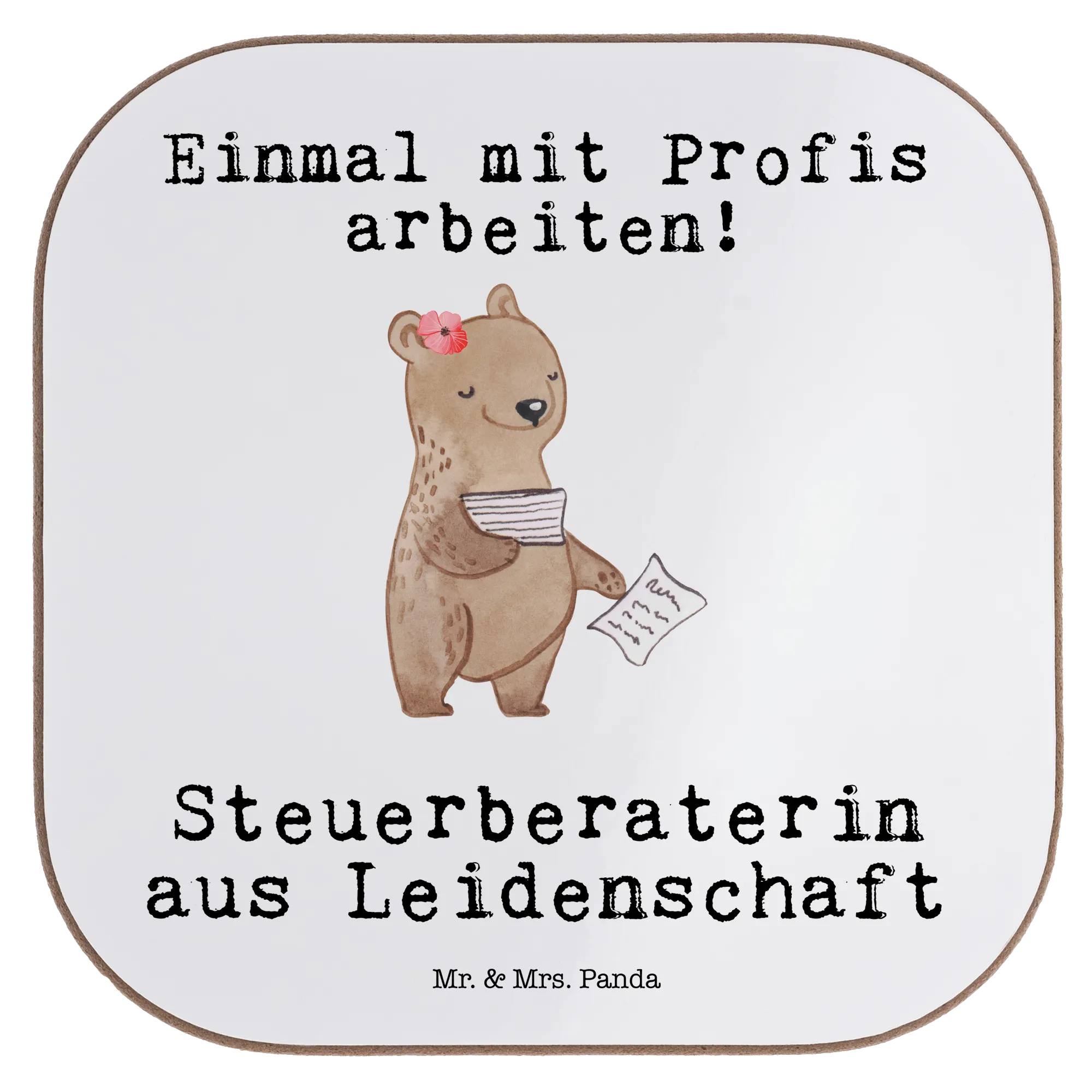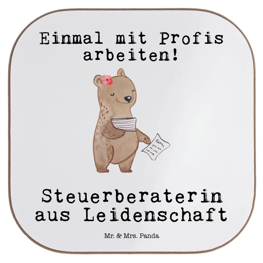 Der Untersetzer „Steuerberaterin aus Leidenschaft“ von Mr. & Mrs. Panda ist das ideale Geschenk für alle Steuerberaterinnen und all jene, die in diesem faszinierenden Berufsfeld tätig sind. Mit einem charmanten Motiv, das eine süße Bärin zeigt, die stolz mit einem Stapel Unterlagen in der Hand dasteht, bringt dieser quadratische Untersetzer nicht nur Funktionalität, sondern auch eine Menge Freude in jeden Raum.