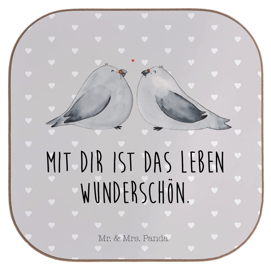 Quadratische Untersetzer Turteltauben Liebe - mit Spruch - Grau Pastell