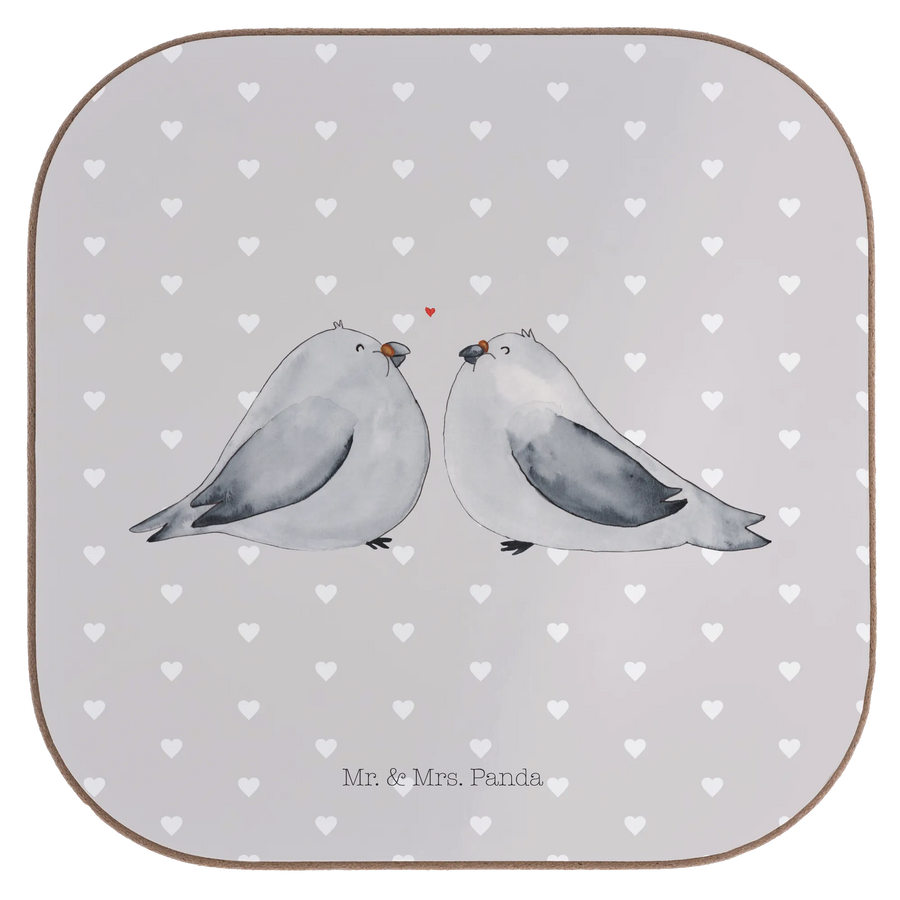 Quadratische Untersetzer Turteltauben Liebe - ohne Spruch - Grau Pastell