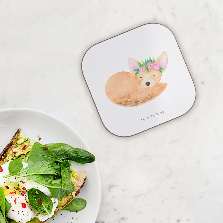 Quadratische Untersetzer Wüstenfuchs Blumenkranz - ohne Spruch