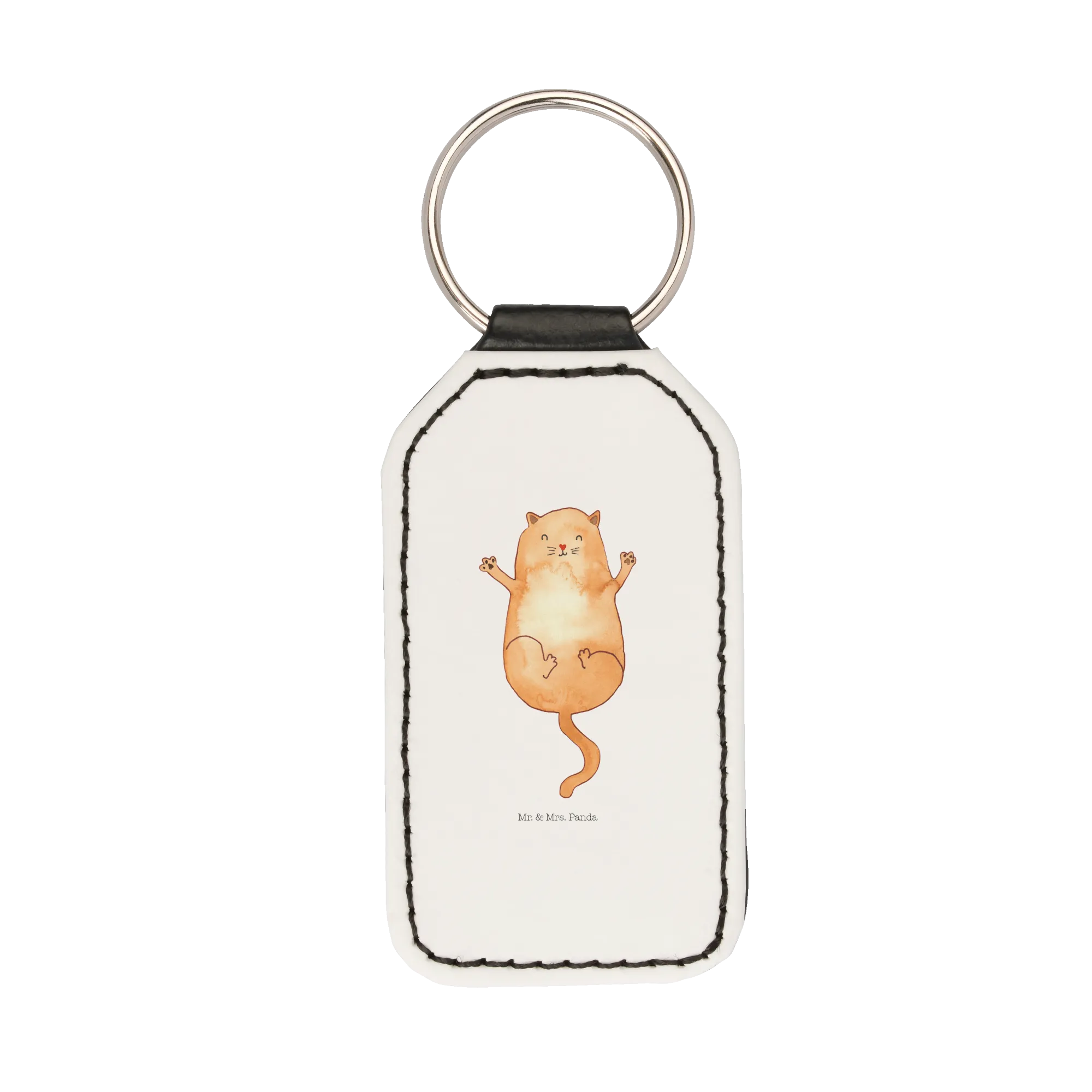 Rechteckig Schlüsselanhänger Katzen Umarmen - Weiß
