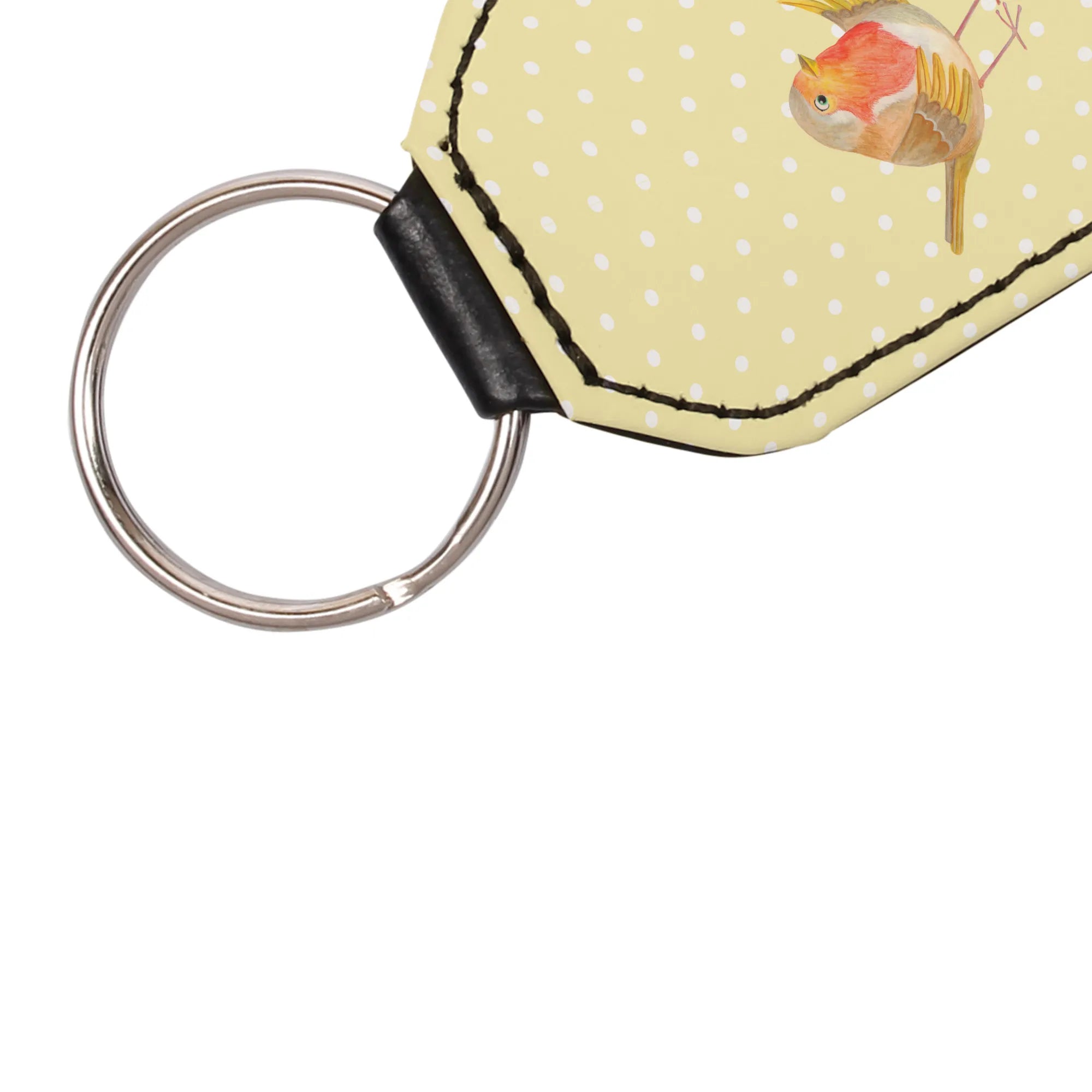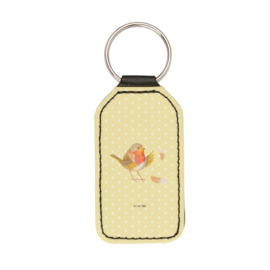 Rechteckig Schlüsselanhänger Rotkehlchen Federn - Gelb Pastell