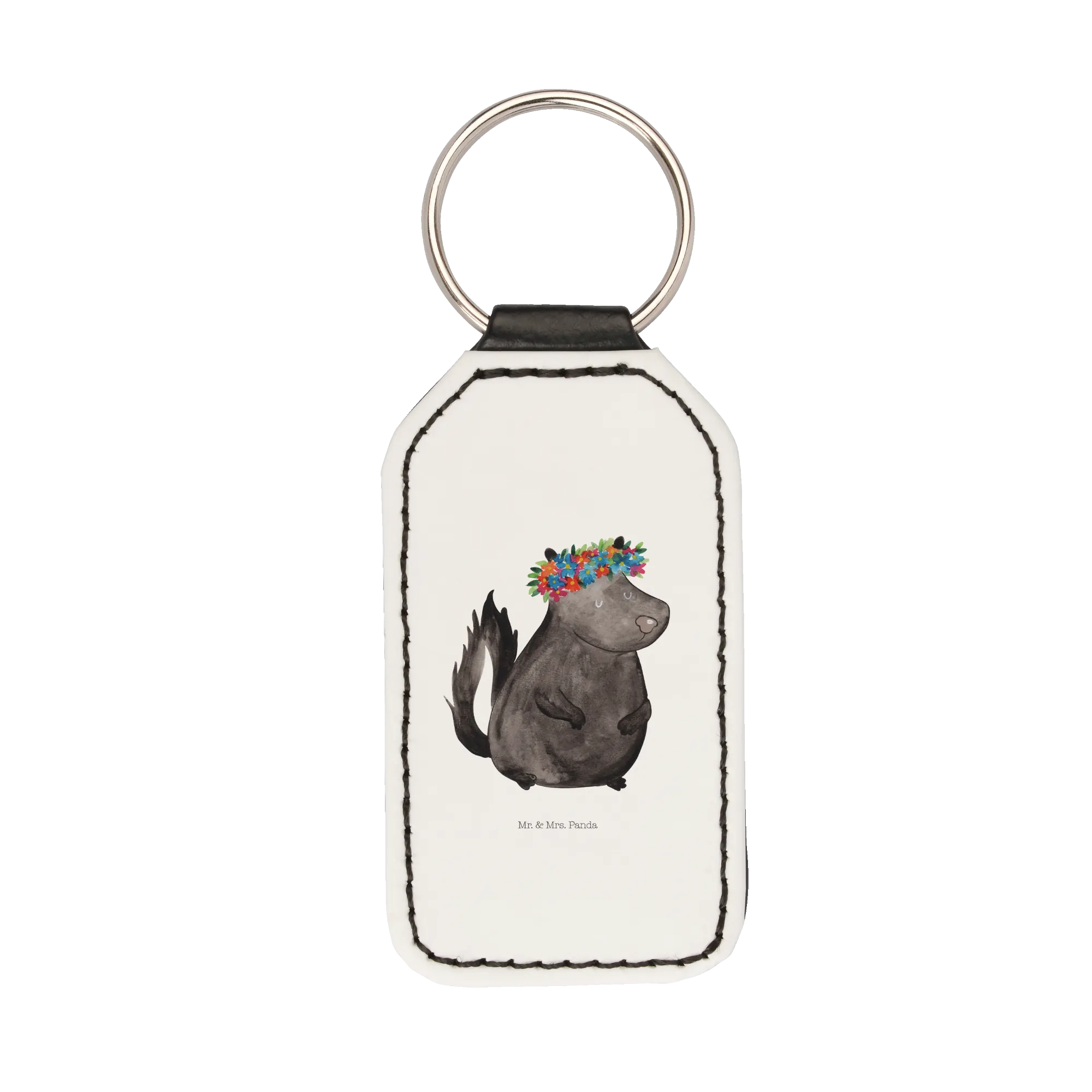 Rechteckig Schlüsselanhänger Stinktier Blumenmaedchen - Weiß