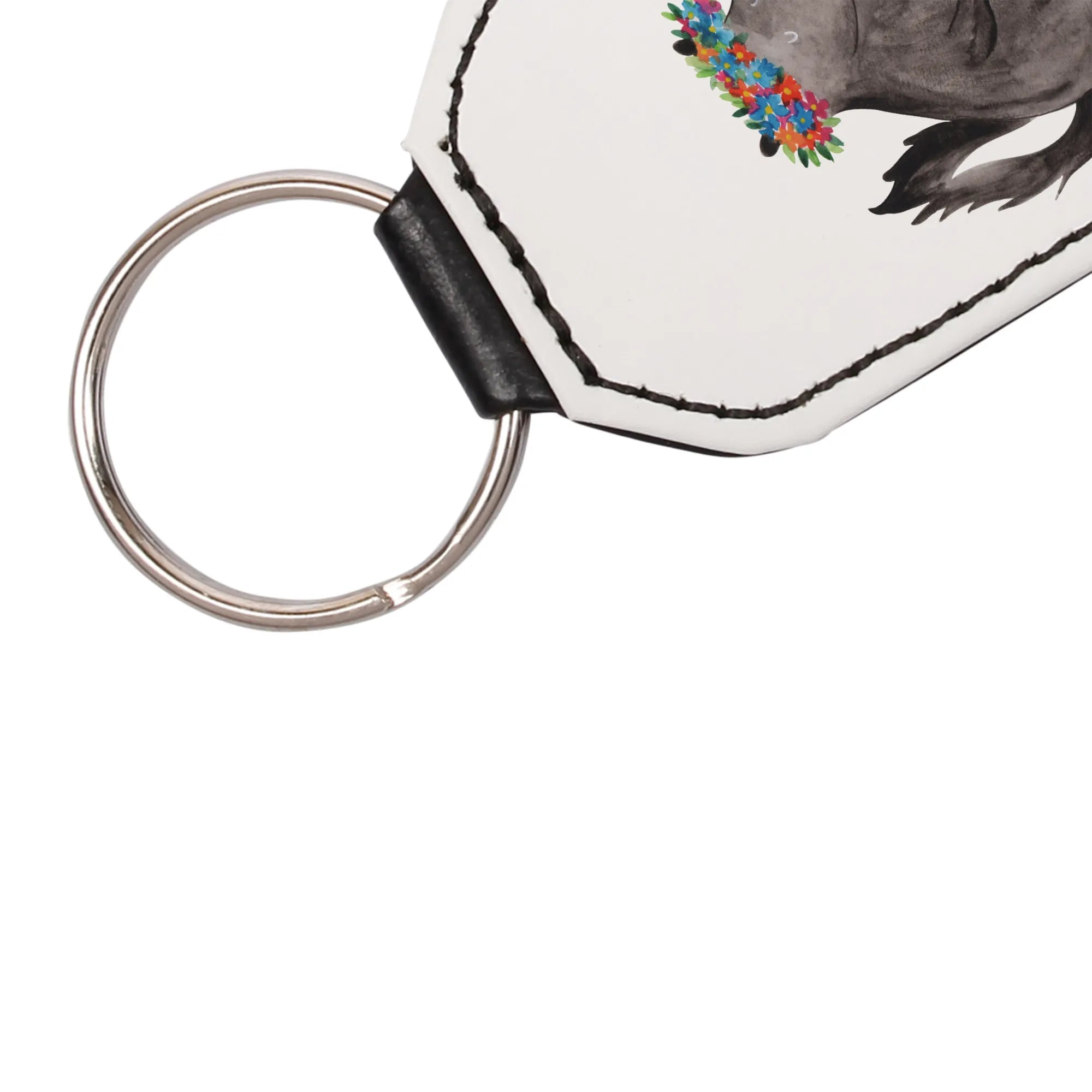 Mit dem rechteckigen Schlüsselanhänger von Mr. & Mrs. Panda verwandelst du deinen Schlüsselbund in ein Kunstwerk. Das edle Premium Kunstleder, dimensionsgenau zurechtgeschnitten auf 70 mm x 40 mm, und die hochwertige Verarbeitung garantieren Langlebigkeit und Stil. Jedes Design reflektiert die Freude und Liebe, die in der Kreation steckt. Als Schutzengel oder Glücksbringer ist dieser Anhänger ein treuer Begleiter und verleiht deinem Alltag eine persönliche Note. Erlebe, wie ein einfacher Anhänger deinen Tag verschönern kann, und finde in der breiten Motivpalette von Mr. & Mrs. Panda deinen Favoriten. Geliefert in einer ansprechenden Geschenkverpackung, eignet er sich hervorragend als liebevolles Präsent.