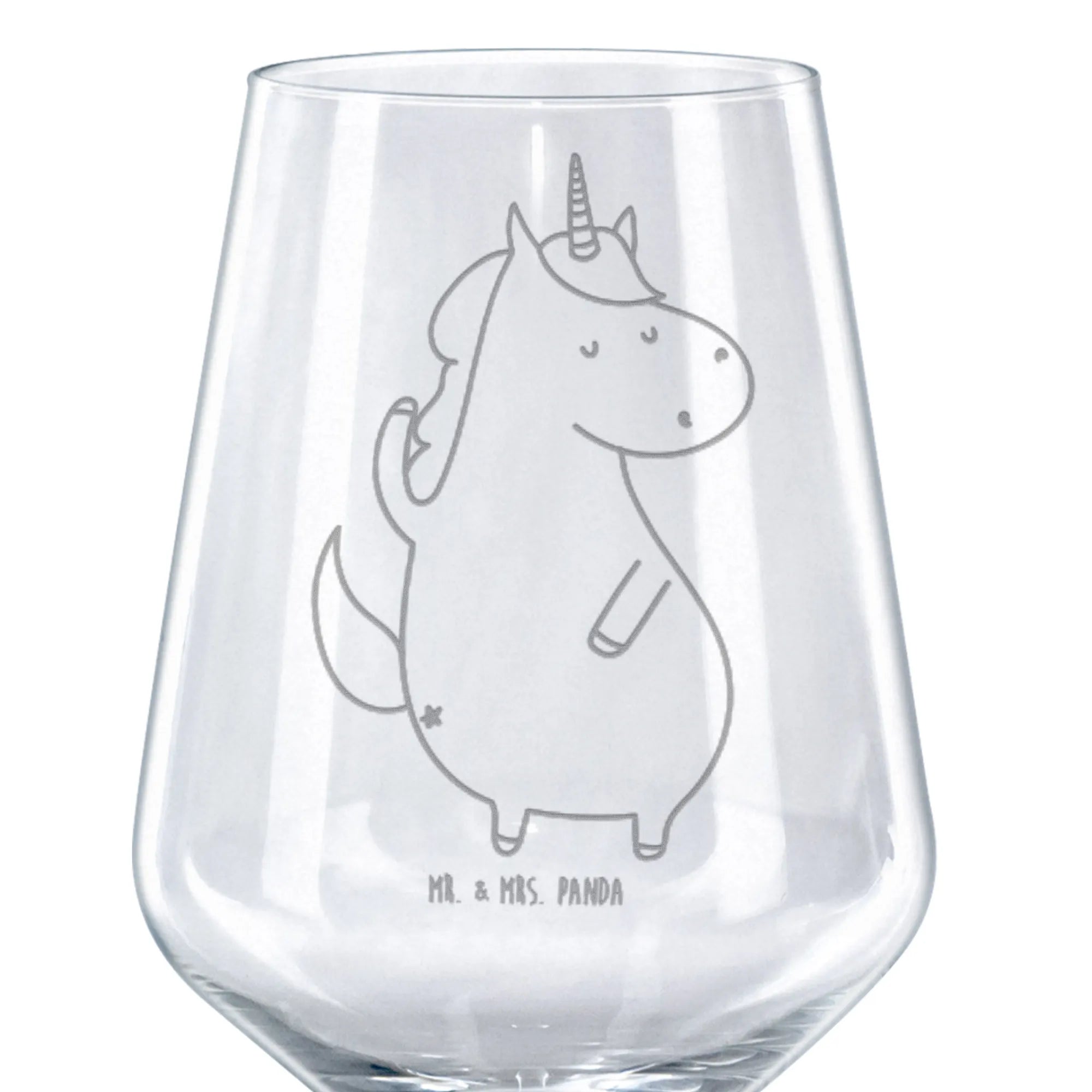 Mr. & Mrs. Panda Rotweinglas „Einhorn Mann“ – das zauberhafte Weinglas für alle, die Rotwein und Humor lieben. 🦄🍷 Dieses besondere Rotweinglas aus unserer Einhorn - Kollektion vereint liebevolles Design mit Alltagstauglichkeit. Das selbstbewusste Einhorn-Motiv wurde von Mrs. Panda per Hand gezeichnet und als hochwertige Lasergravur aufgebracht. Das Ergebnis: ein dezenter Matteffekt, der dem Kelch Tiefe und Charakter verleiht.