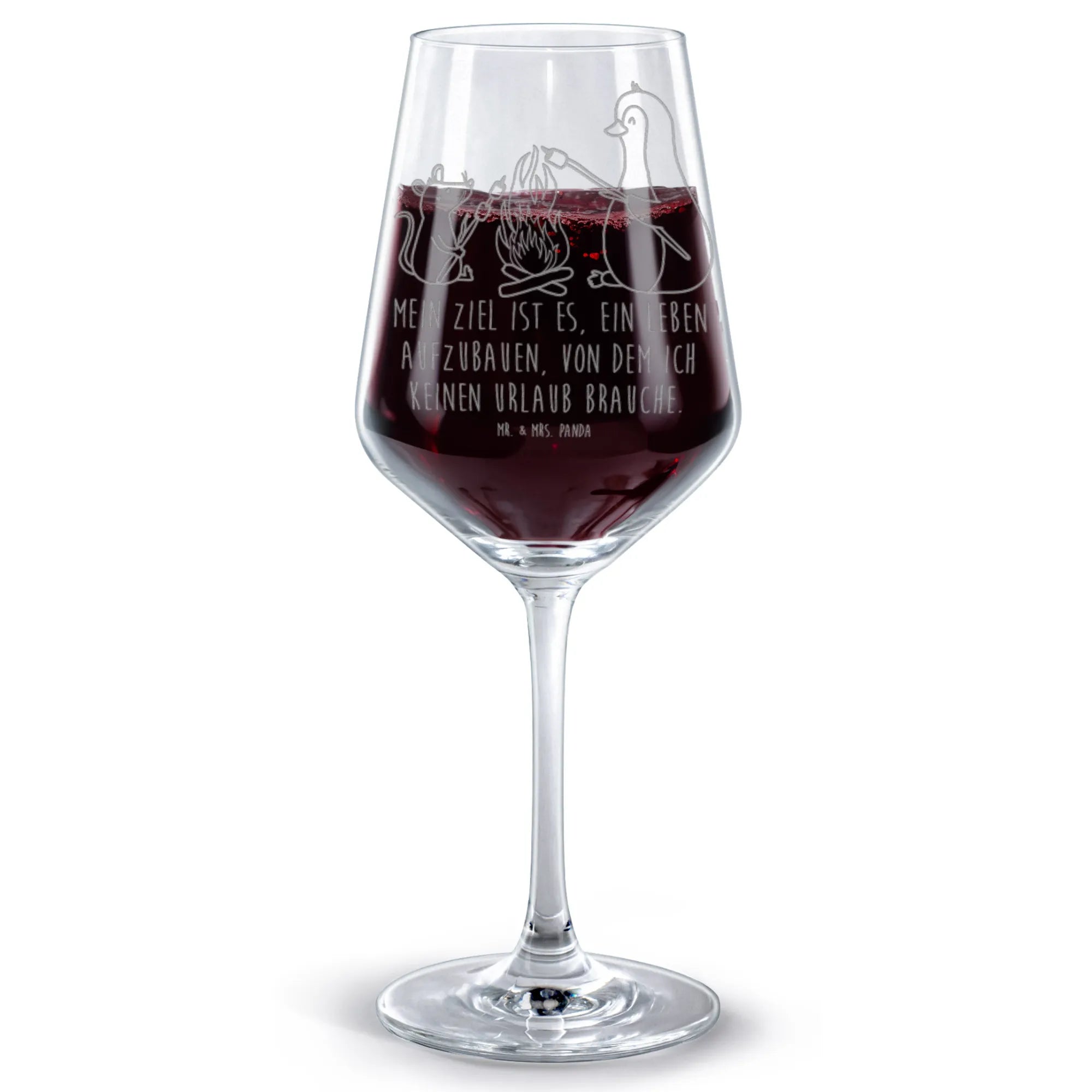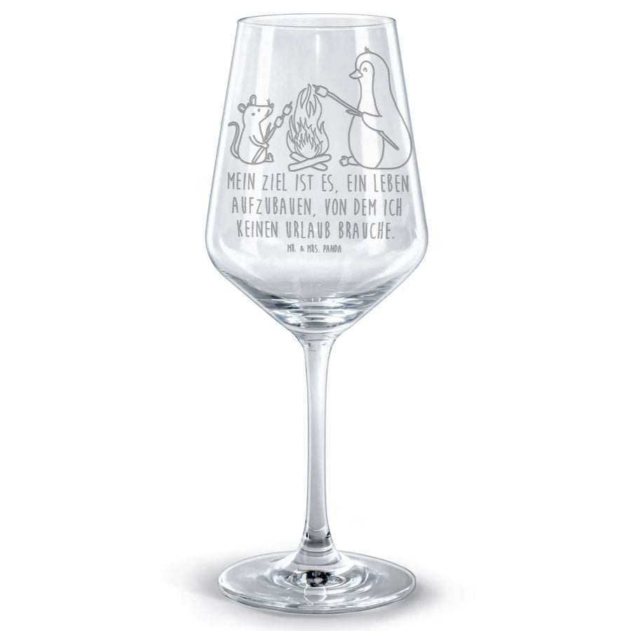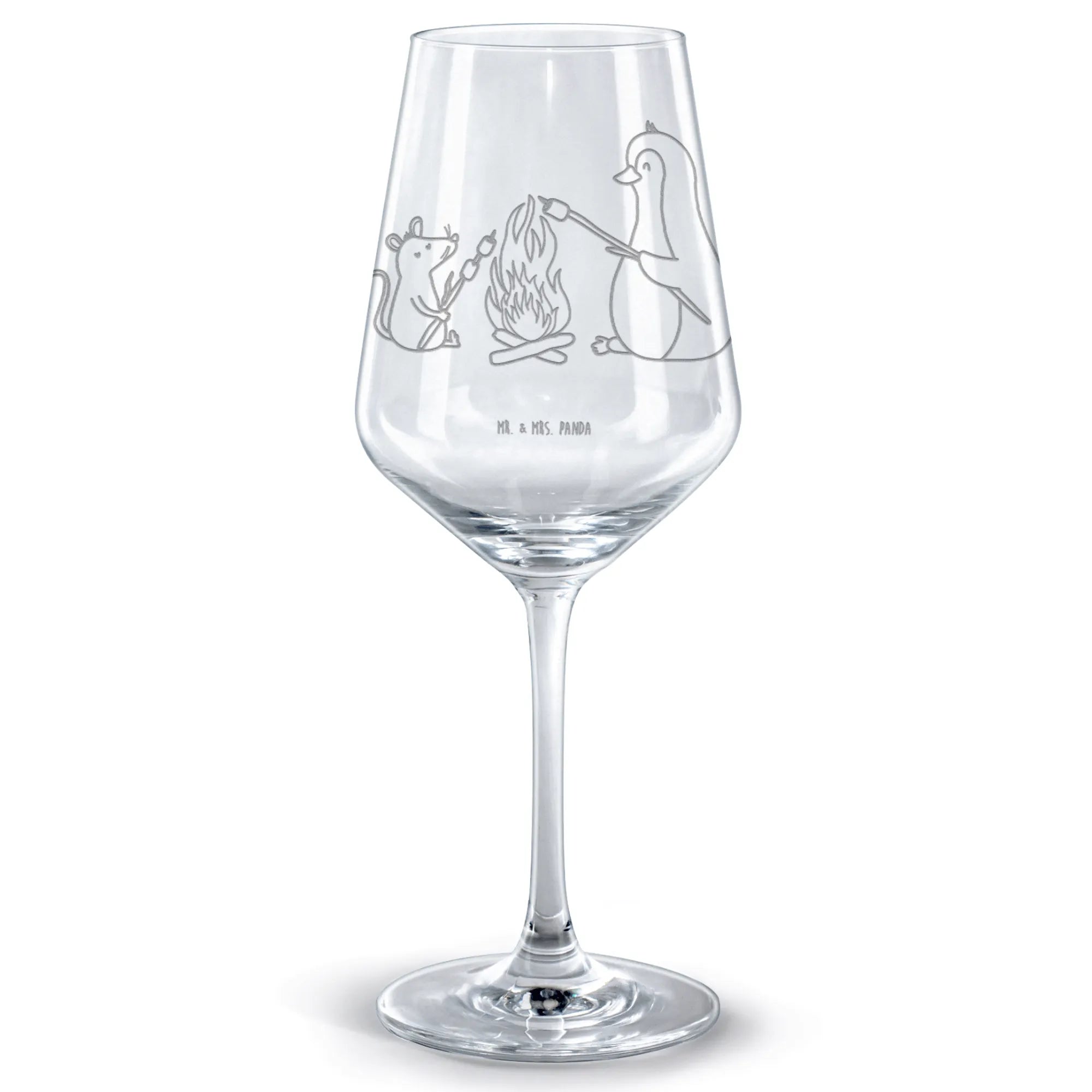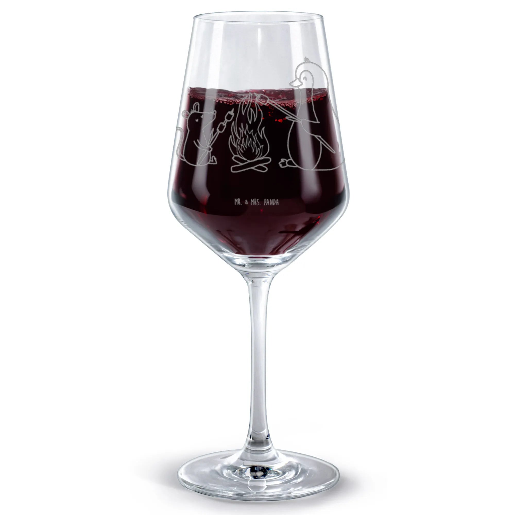 Das wunderschöne Rotwein Glas mit dem einzigartigen Pinguin Lagerfeuer-Motiv von Mr. & Mrs. Panda ist das ideale Geschenk für Weinliebhaber! Hier vereinen sich Eleganz und besondere Designs, die dein Herz höher schlagen lassen. Genieße deinen Rotwein mit einem Lächeln, während du das süße Pinguin-Design und die beinahe magische Atmosphäre eines Lagerfeuers bewunderst. Die kleine Maus, die am Feuer Marshmallows grillt, bringt zusätzlich Freude in dein Weintrink-Erlebnis.