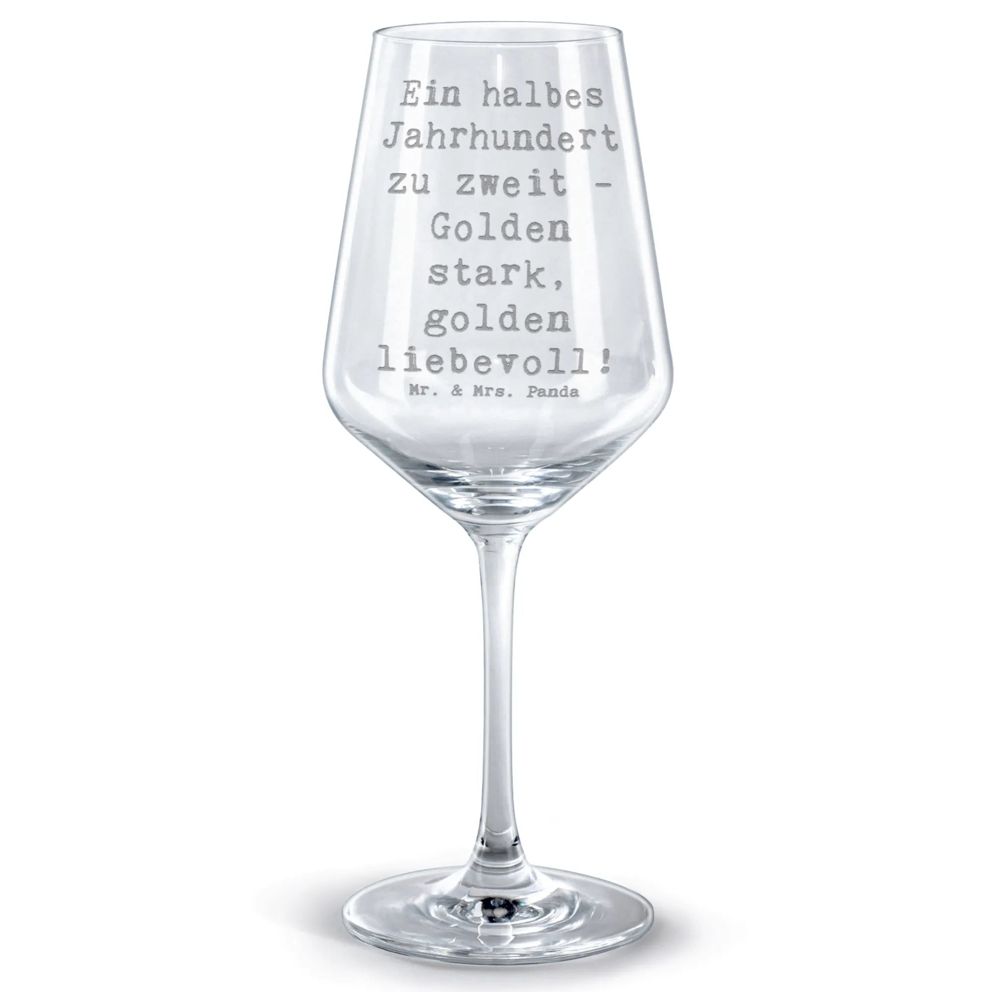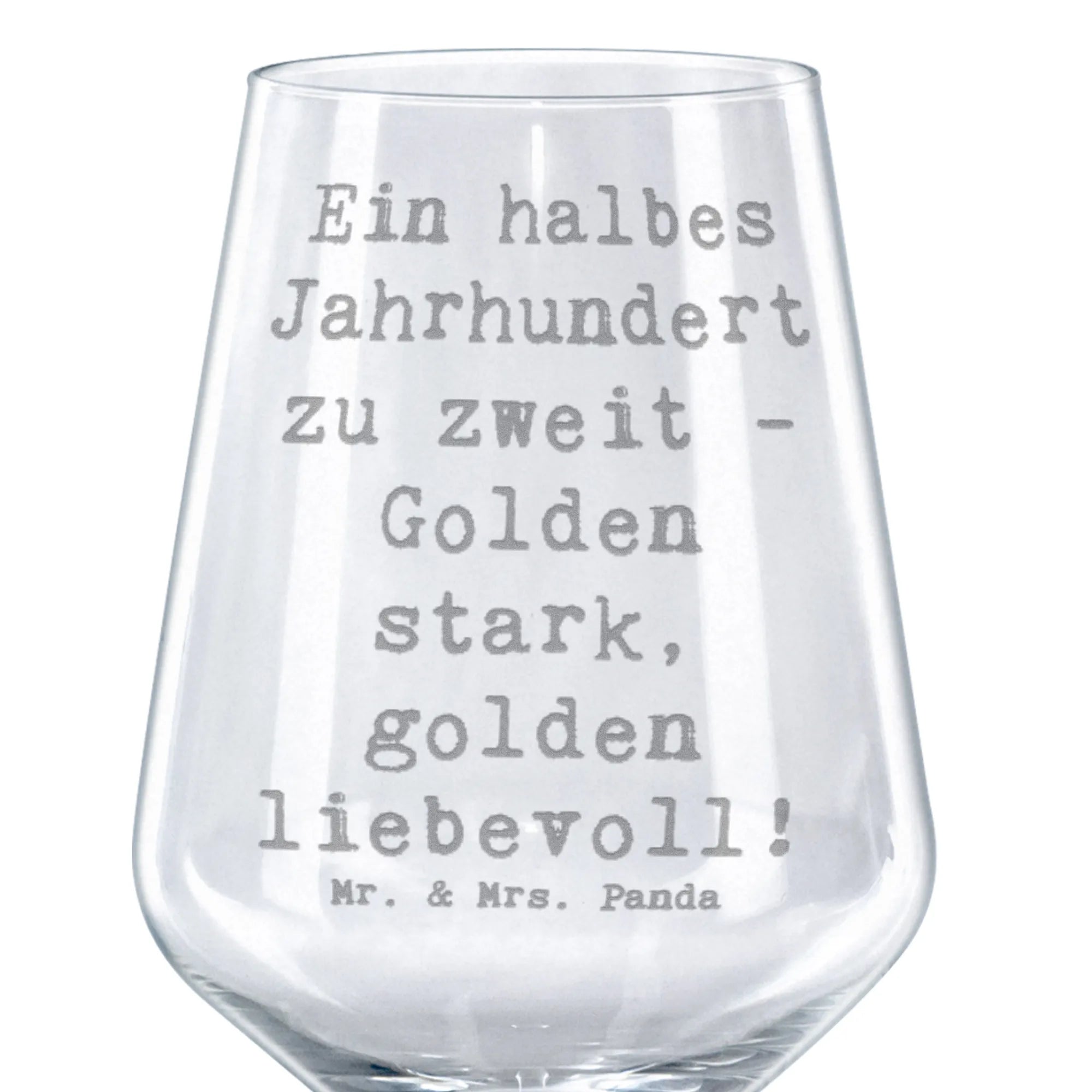 Das wunderschöne Rotweinglas "50. Hochzeitstag Goldene Hochzeit" von Mr. & Mrs. Panda ist das perfekte Geschenk für alle, die ihr halbes Jahrhundert der Liebe gebührend feiern möchten! Mit der liebevollen Gravur "Ein halbes Jahrhundert zu zweit - Golden stark, golden liebevoll!" wird dieses Weinglas schnell zum Highlight auf jedem festlich gedeckten Tisch. Es ist nicht nur ein wunderschönes Weinglas, sondern auch ein Zeichen der tiefen Verbundenheit und der vielen schönen Erinnerungen, die das Paar in diesen 50 Jahren gesammelt hat.