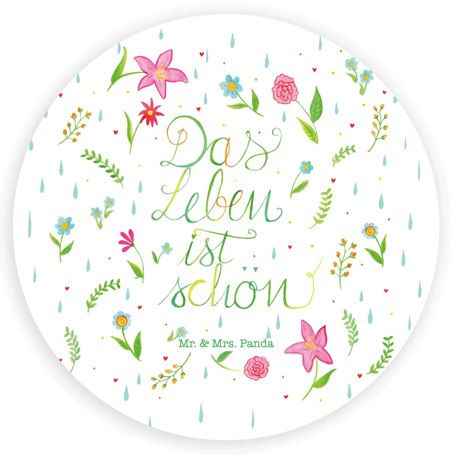 Willkommen in der bunten Welt der Mr. & Mrs. Panda Aufkleber! Unser 80mm Rund Aufkleber mit dem herrlichen Motiv 'Blumen – Das Leben ist schön' aus der zauberhaften Collection Wild & Free ist ein echter Blickfang. Dieser Sticker bringt Lebensfreude und positive Energie in jeden Raum!