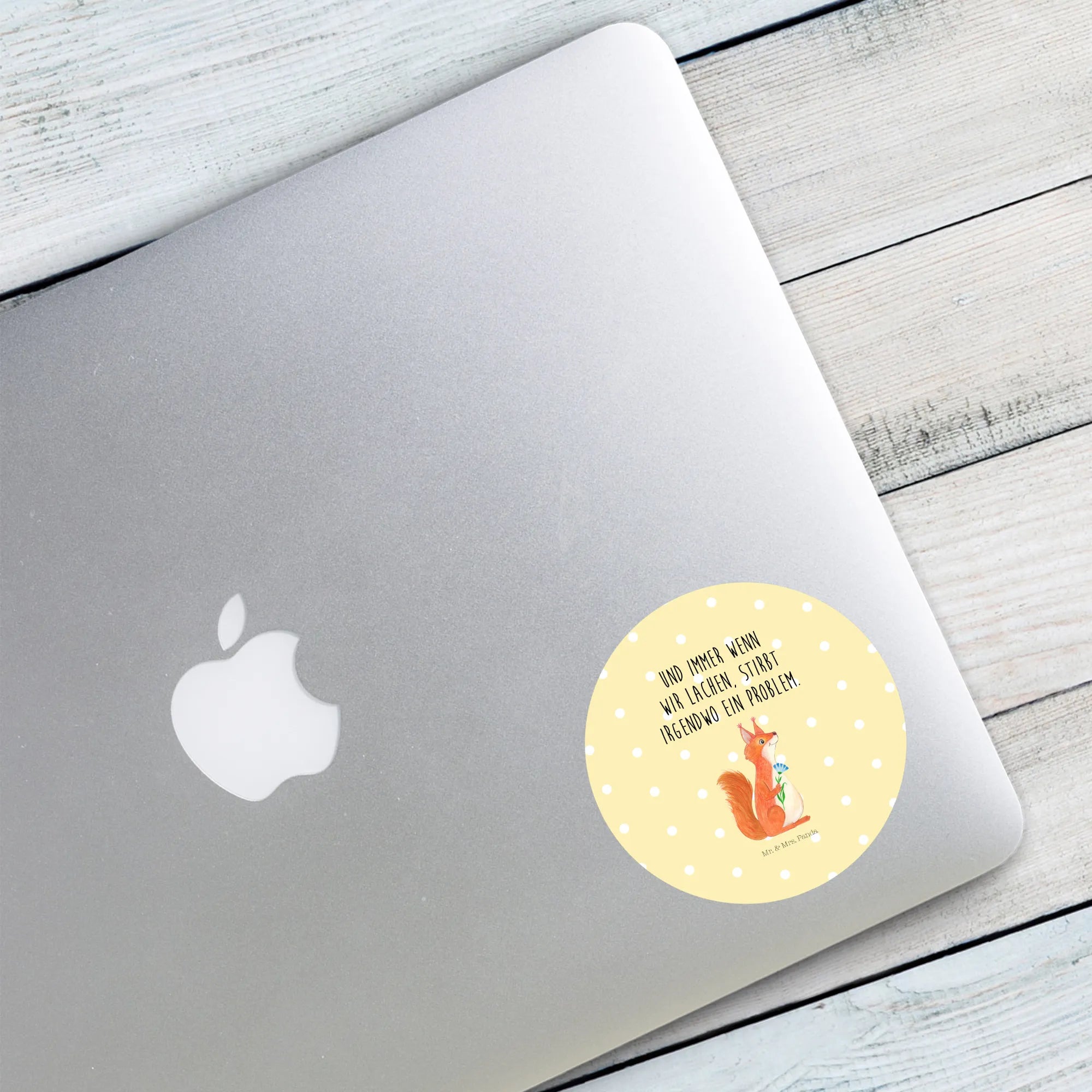Begleitet von dem wundervollen Spruch 'Und immer wenn wir lachen, stirbt irgendwo ein Problem', erinnert er dich daran, dass Humor oft die beste Medizin ist. Das Eichhörnchen blickt mit großen, begeisterten Augen in die Welt und scheint zu sagen: Kopf hoch, das Leben ist schön! Dieser runde Aufkleber ist perfekt dafür geeignet, deinen Alltag ein Stückchen bunter zu gestalten. Ob auf deinem Laptop, deinem Planer oder als kleiner Akzent auf einem Geschenk für einen lieben Menschen – die hochwertige Premium Folie sorgt dafür, dass das Motiv in den schönsten Farben erstrahlt.