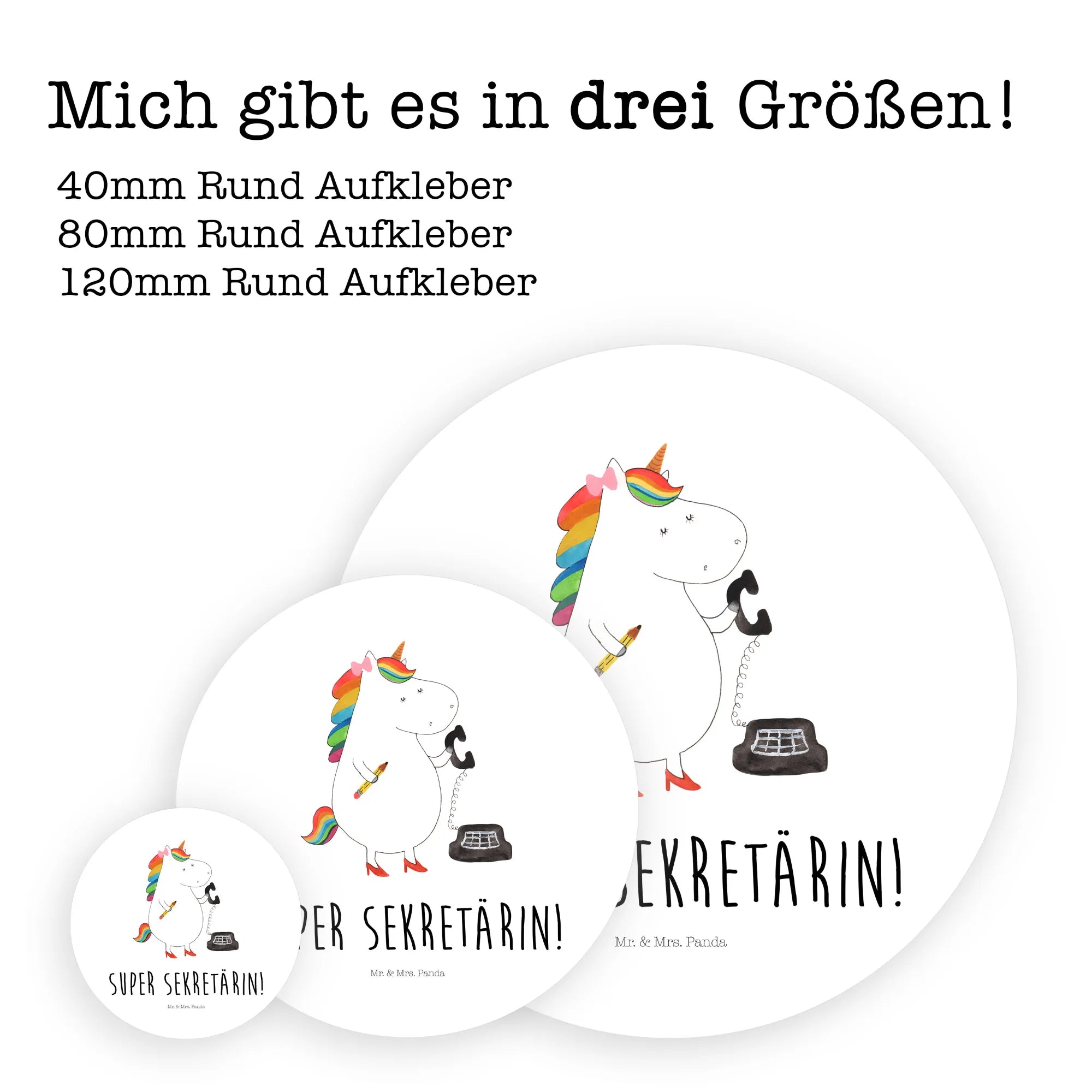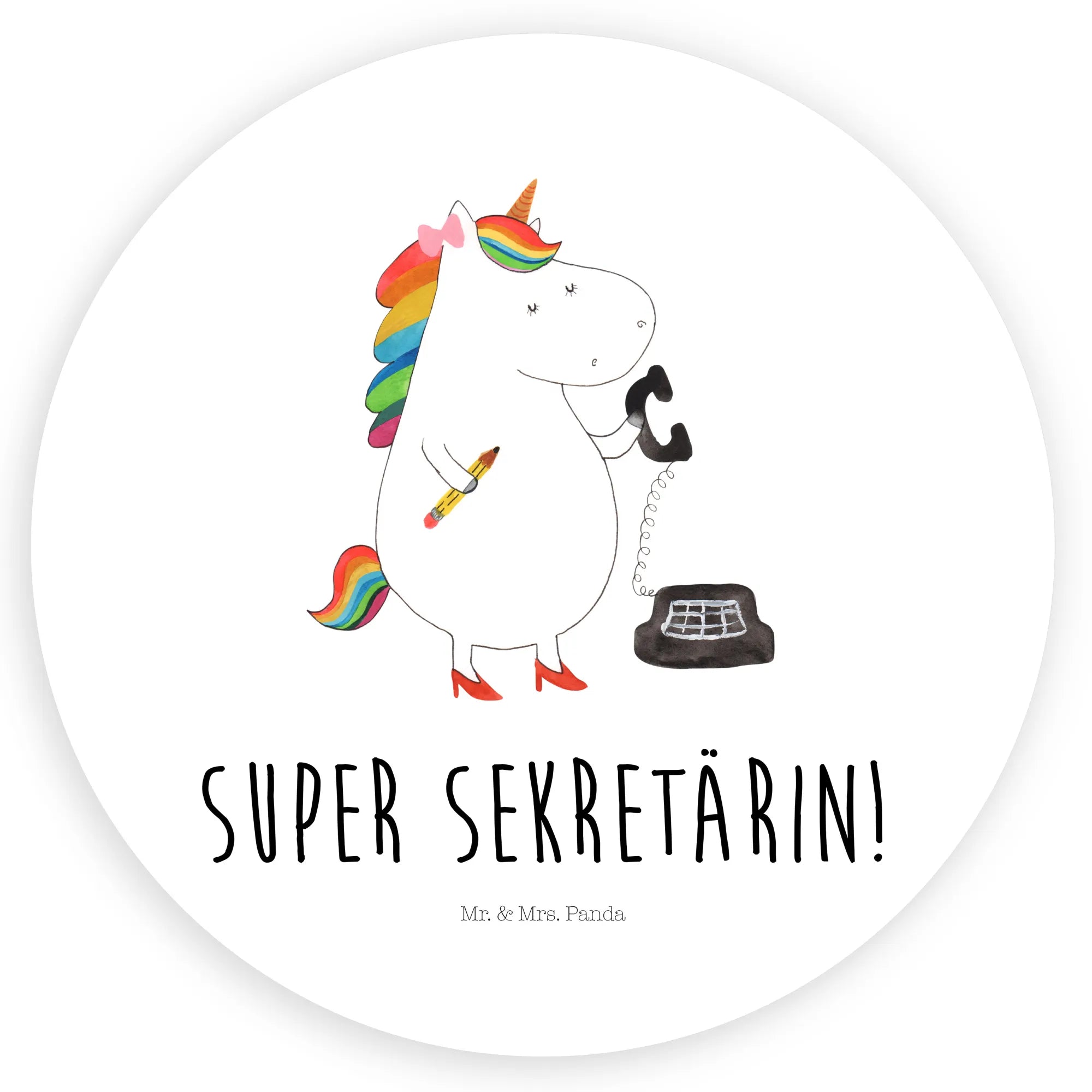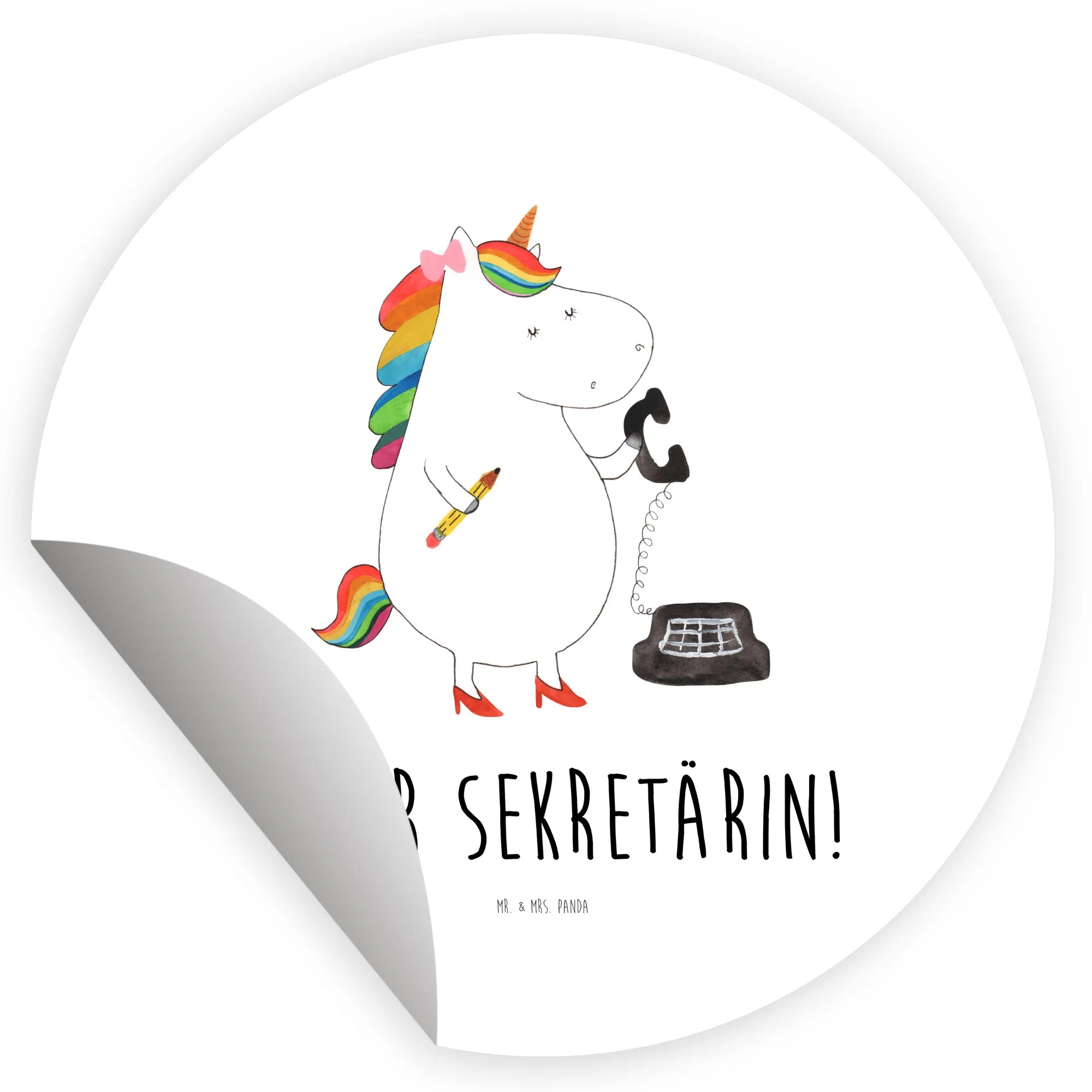 Rund Aufkleber Einhorn Sekretärin – Mr. & Mrs. Panda
