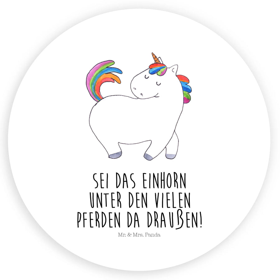 Sticker Einhorn Stolzieren - 80mm Rund Aufkleber - mit Spruch