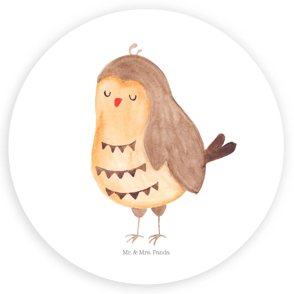 Rund Aufkleber Eule Zufrieden - 80mm Rund Aufkleber - mit Spruch - Weiß