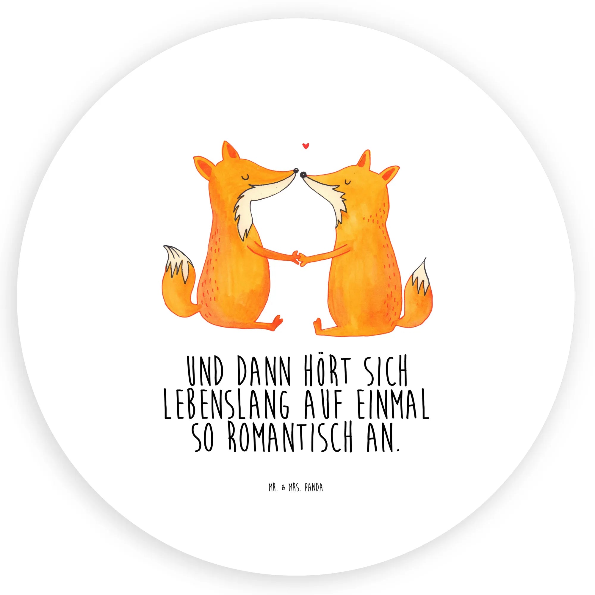 Rund Aufkleber Füchse Liebe - 80mm Rund Aufkleber - mit Spruch - Weiß