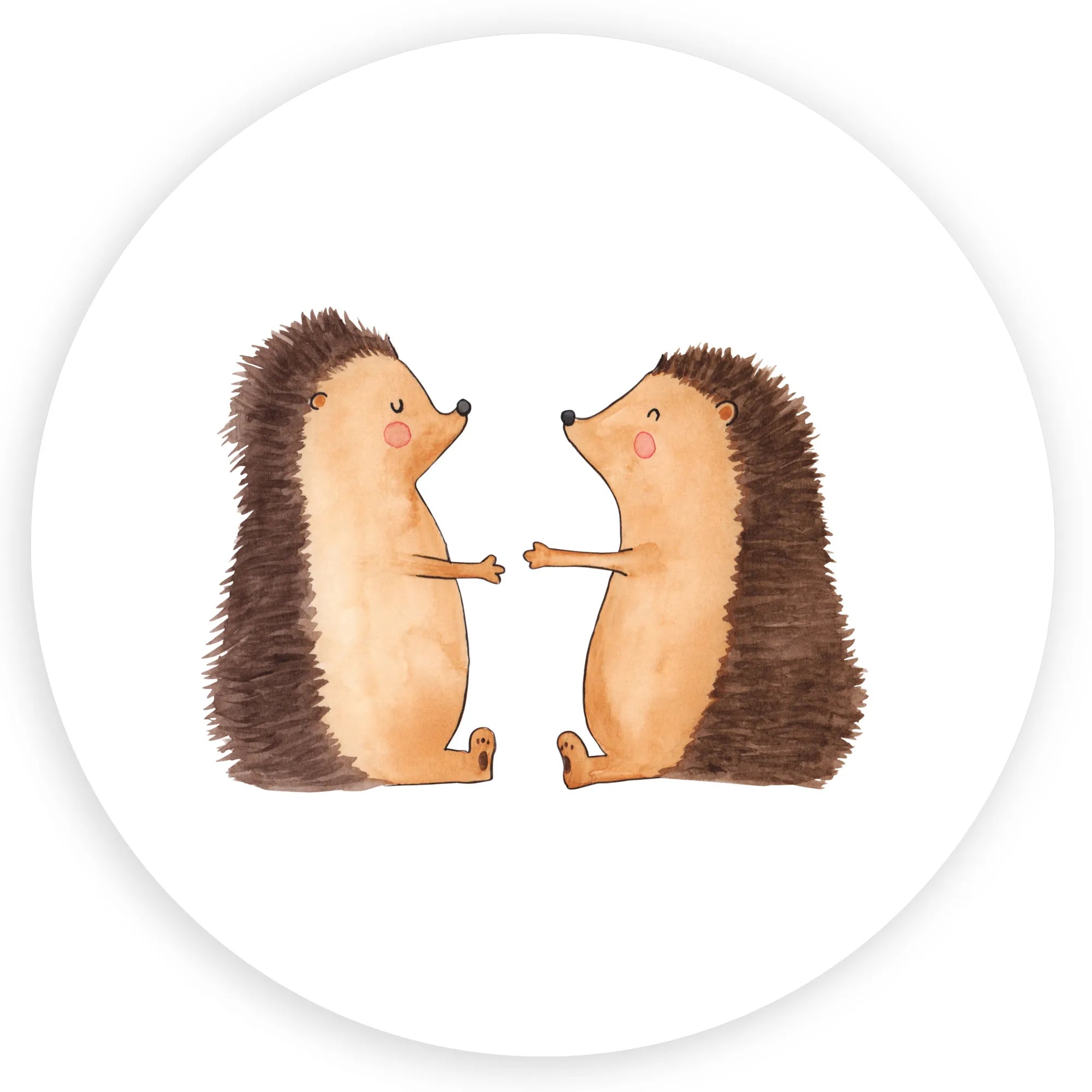 Rund Aufkleber Igel Liebe - 80mm Rund Aufkleber - mit Spruch - Weiß