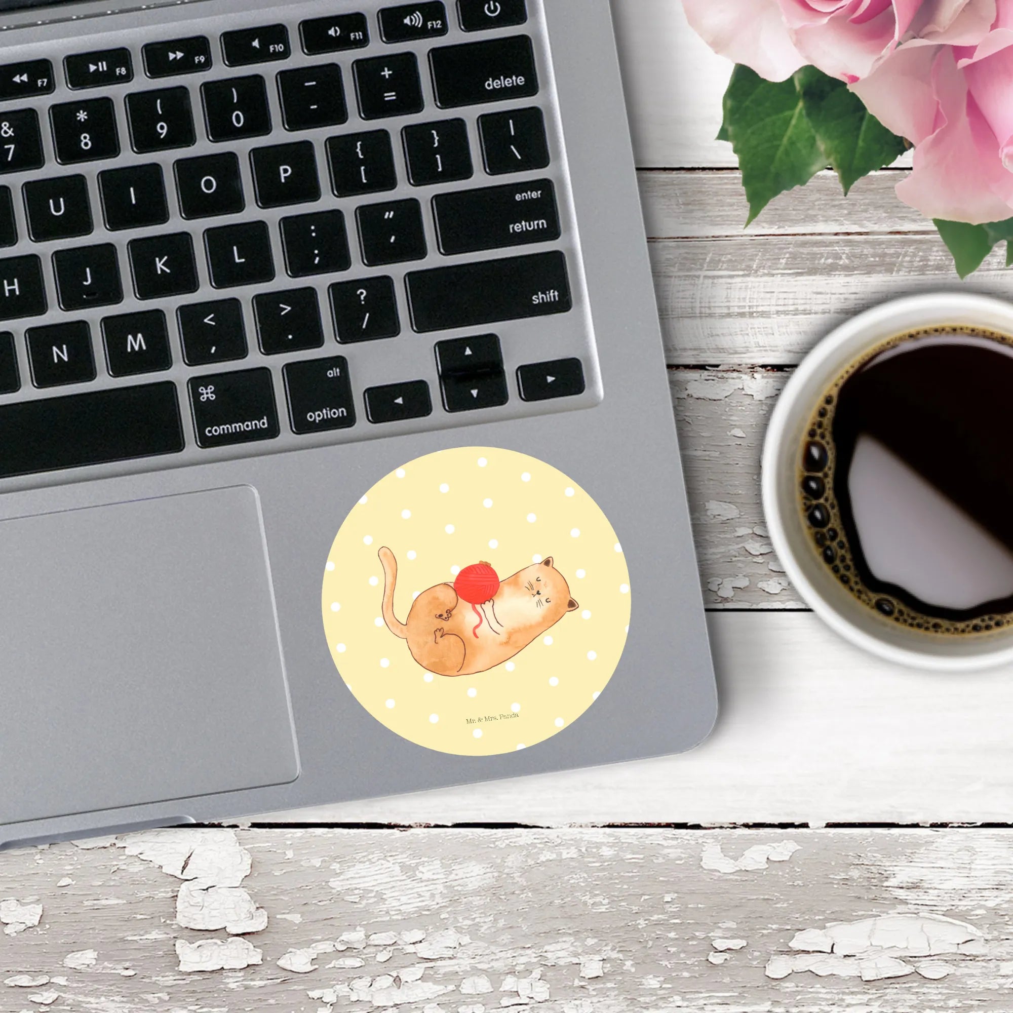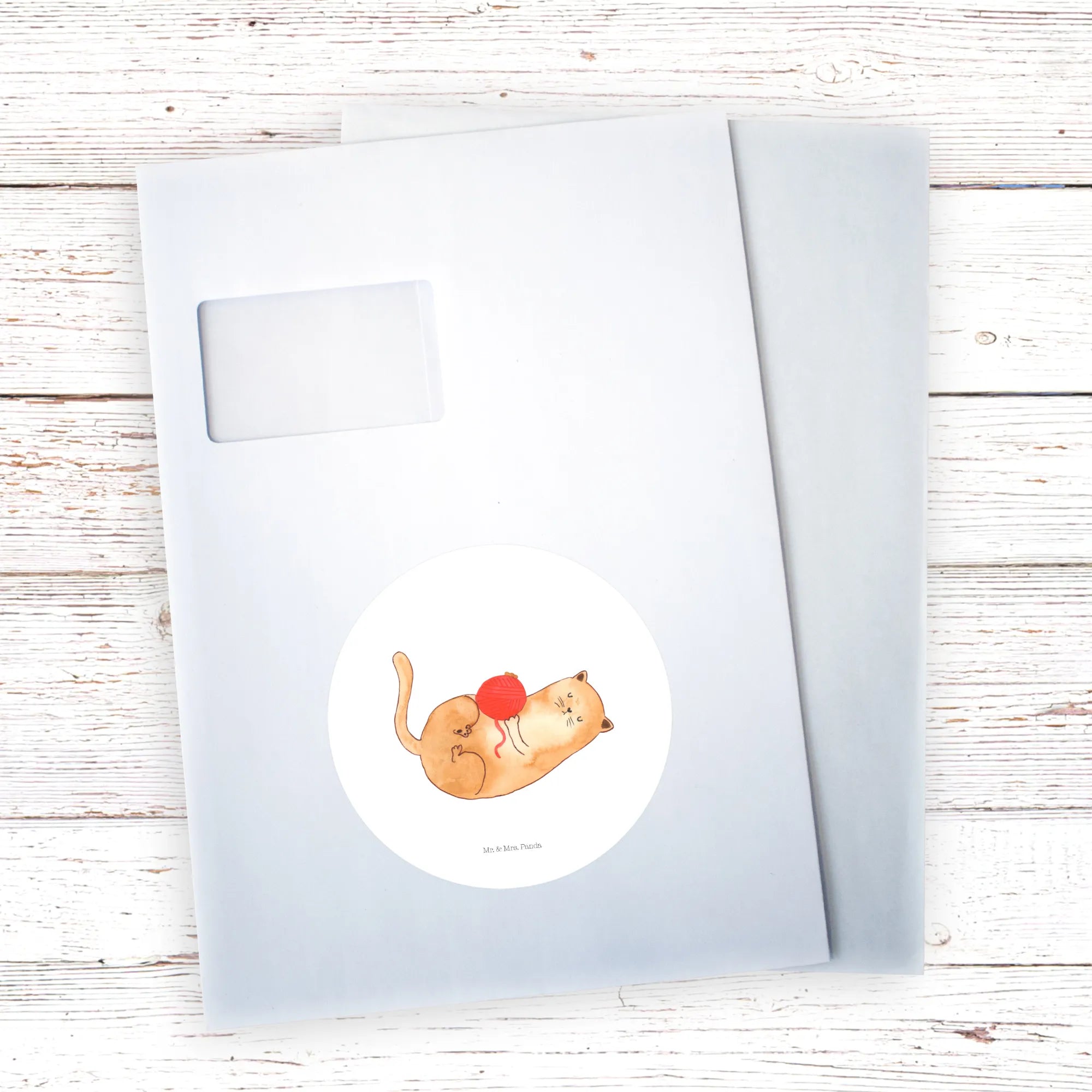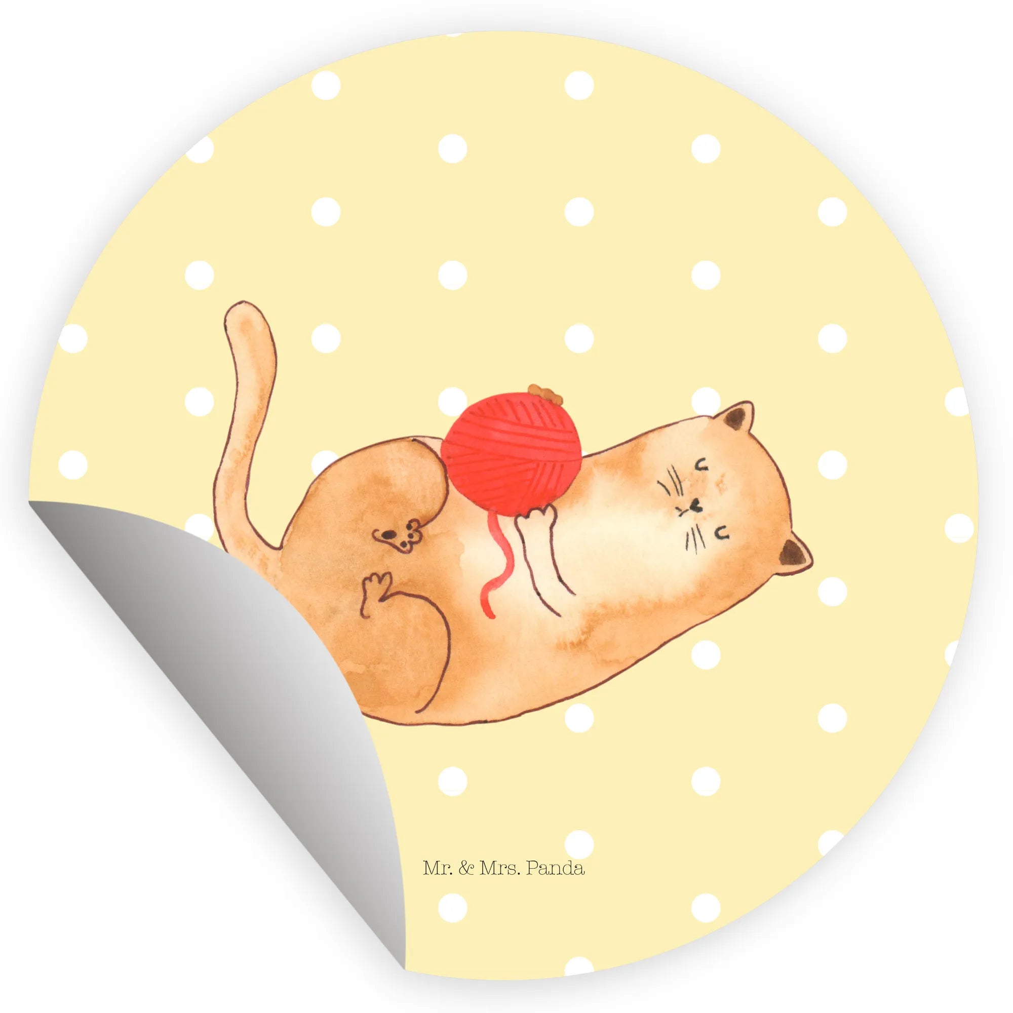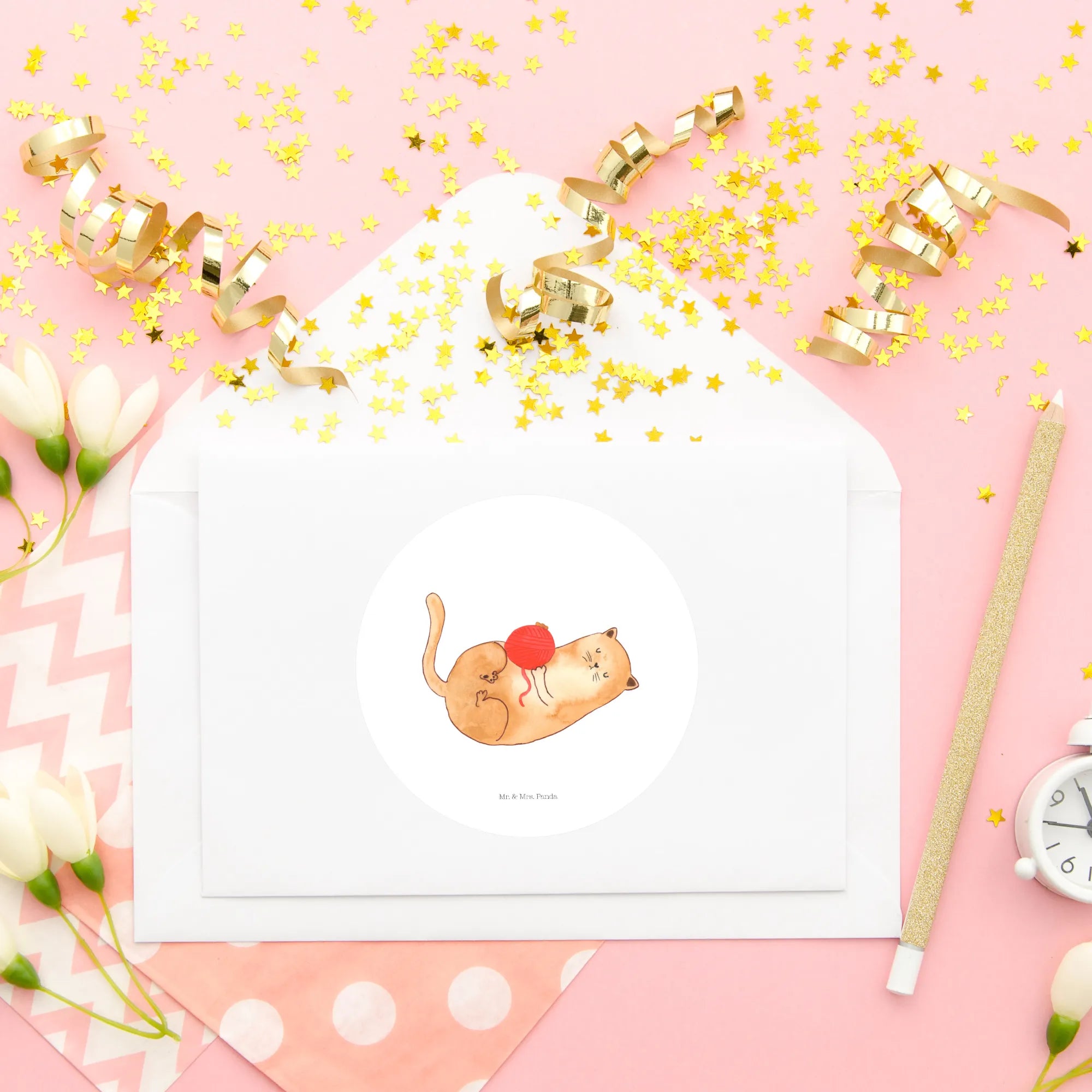 Verschenke Freude, verschönere deine Bastelarbeiten und hülle deine Geschenke in eine warmherzige, verspielte Katzenstimmung mit dem runden Aufkleber "Katzen Wollknäuel" von Mr. & Mrs. Panda.