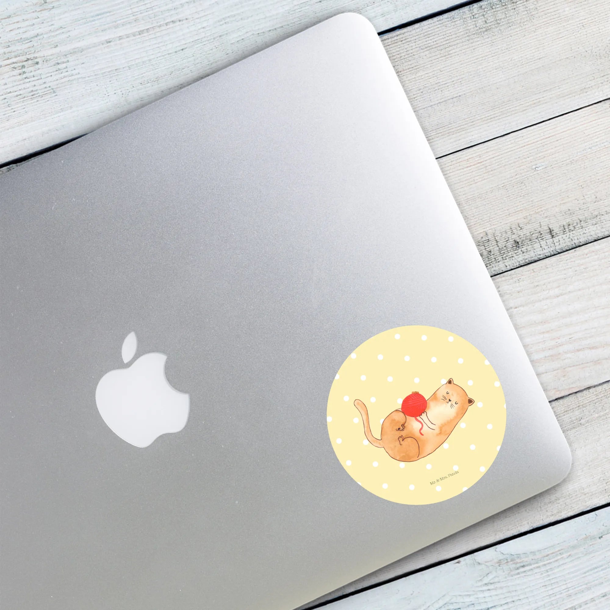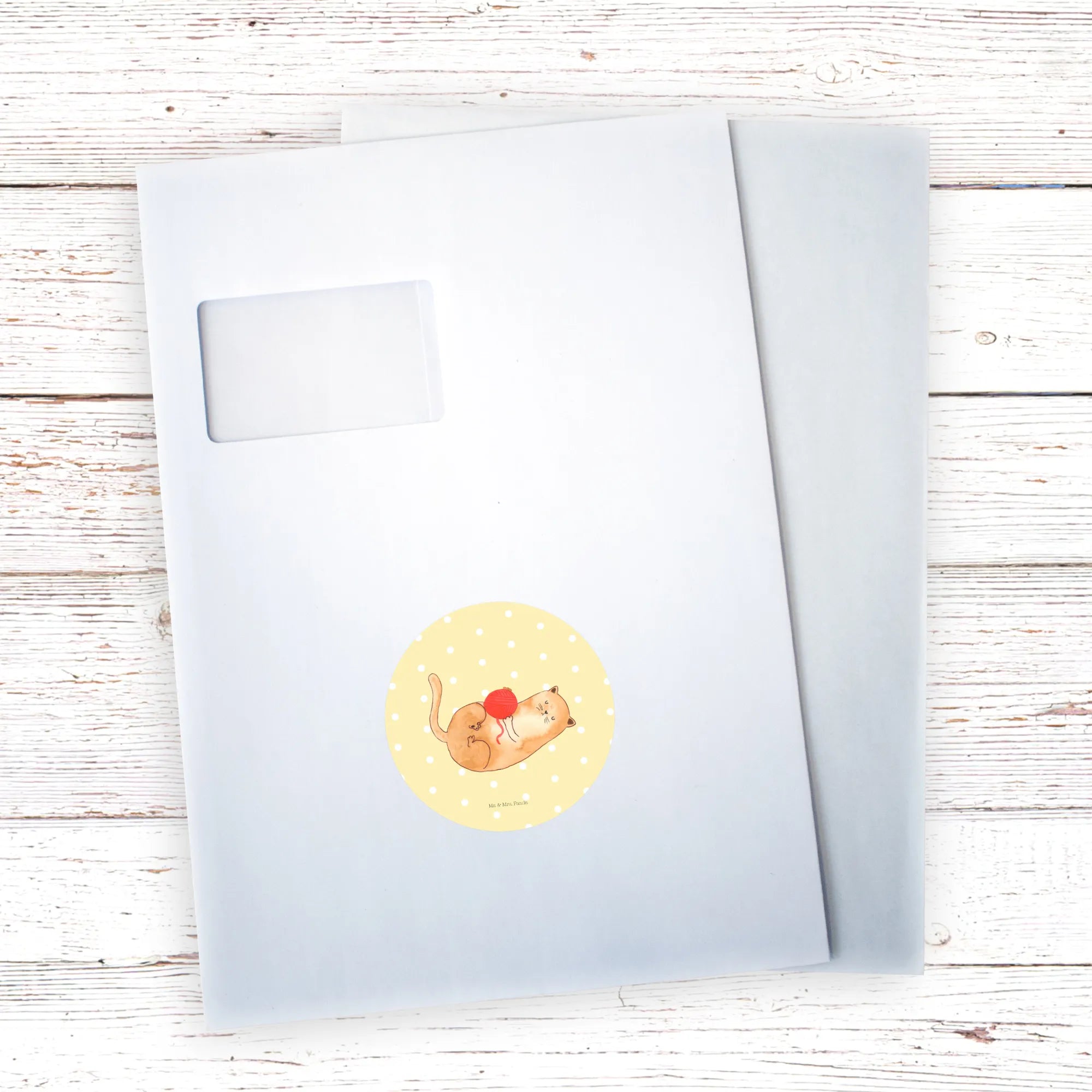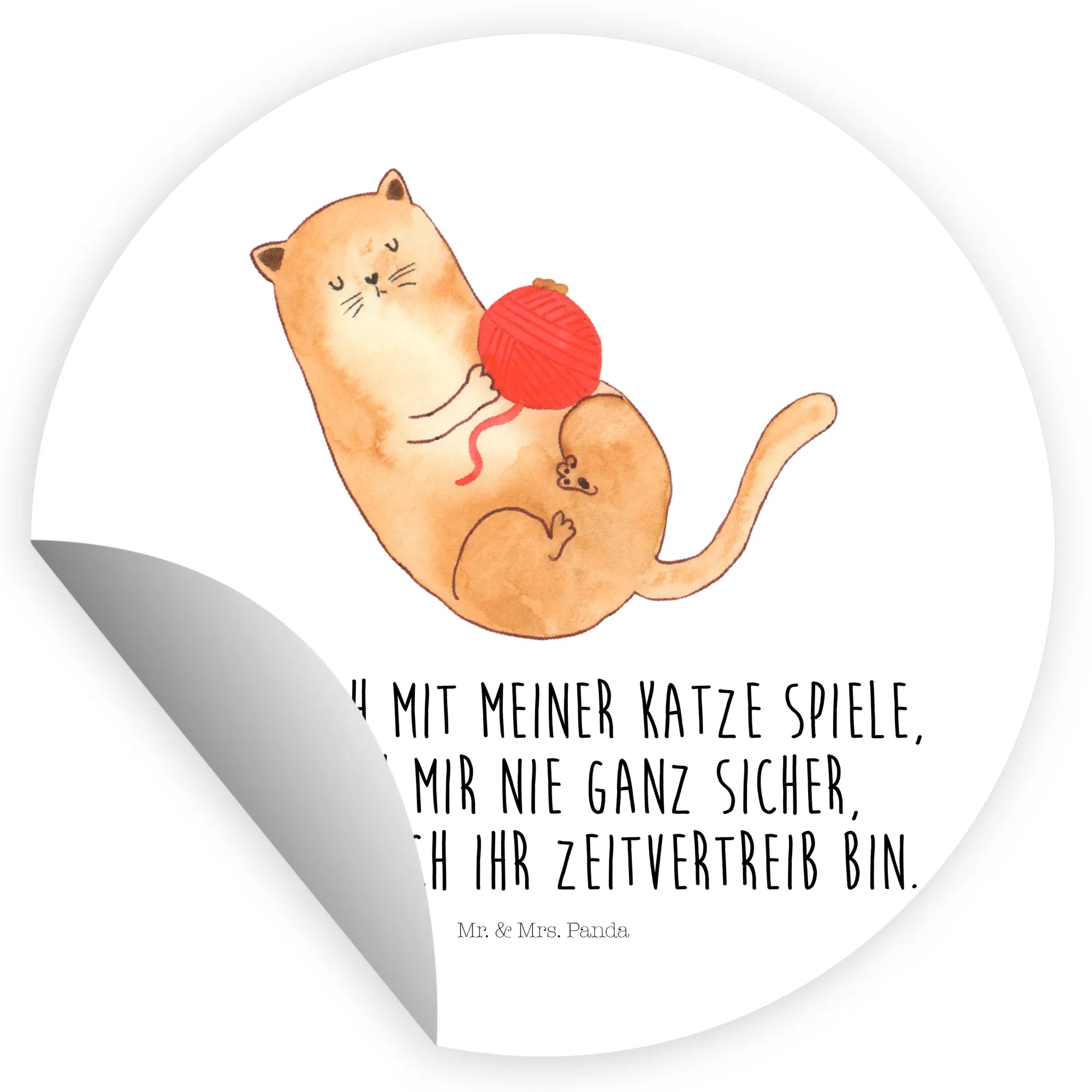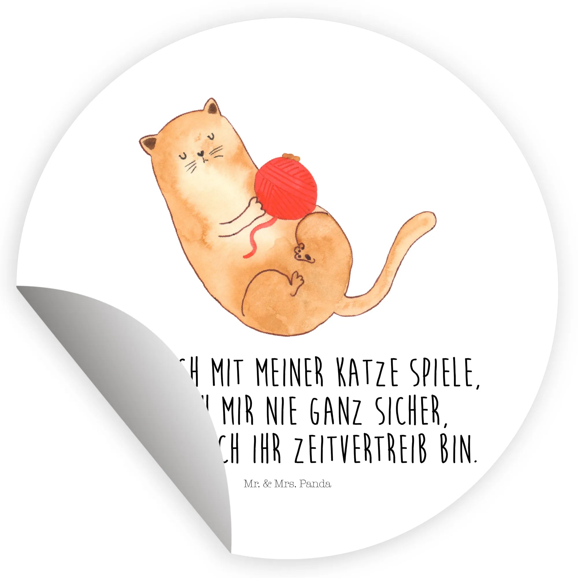 Verschenke Freude, verschönere deine Bastelarbeiten und hülle deine Geschenke in eine warmherzige, verspielte Katzenstimmung mit dem runden Aufkleber "Katzen Wollknäuel" von Mr. & Mrs. Panda.