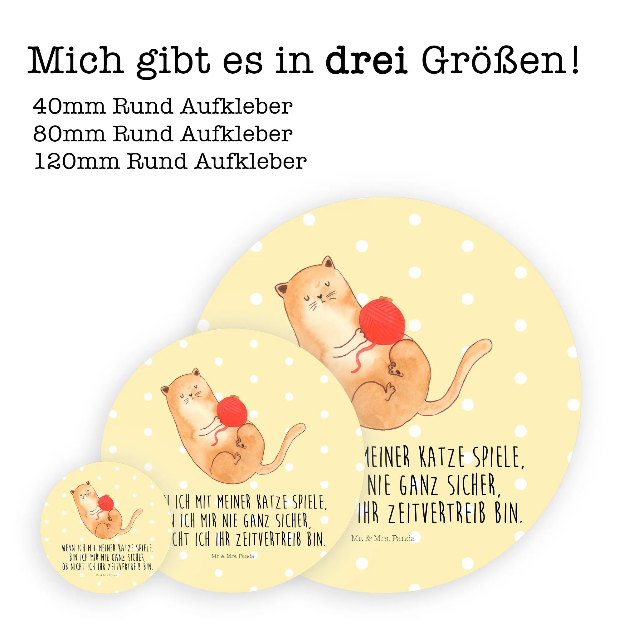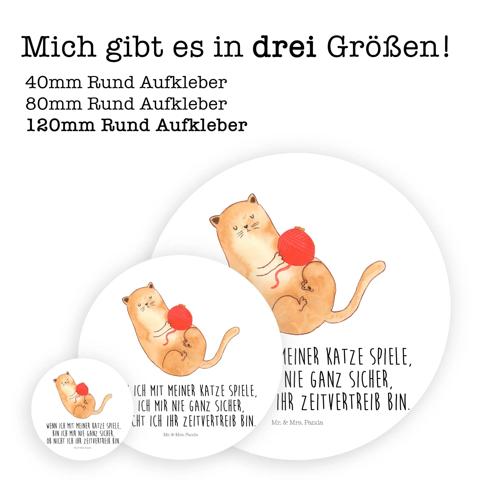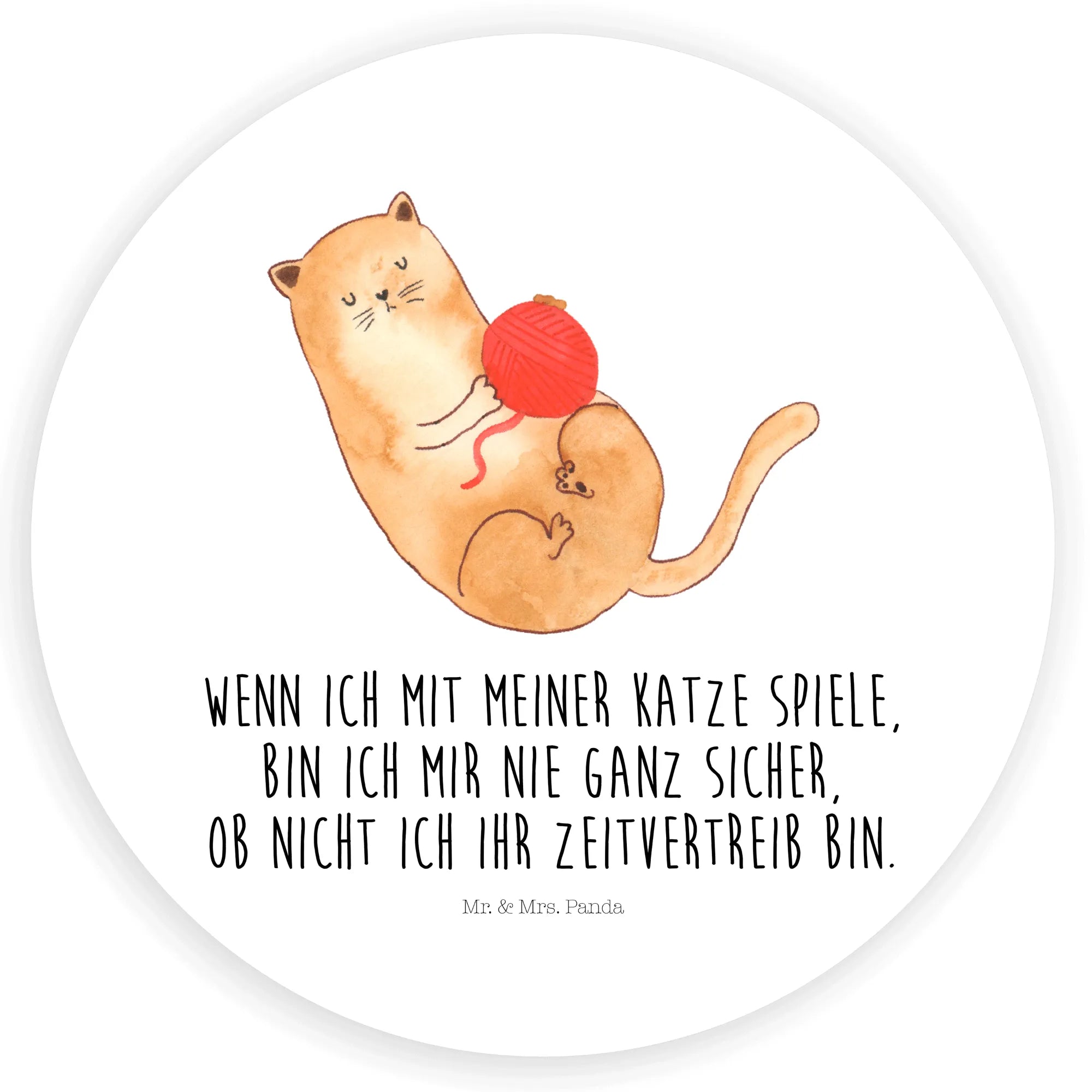 Ein zauberhafter 40mm Rundaufkleber aus der Katzen - Kollektion von Mr. & Mrs. Panda. Unser Motiv „Katzen Wollknäul" zeigt eine verspielte Katze mit Wollknäuel und trägt den wunderbaren Spruch: „Wenn ich mit meiner Katze spiele, bin ich mir nie ganz sicher, ob nicht ich ihr Zeitvertreib bin.“ Ein liebevolles Detail für alle Katzenfans.