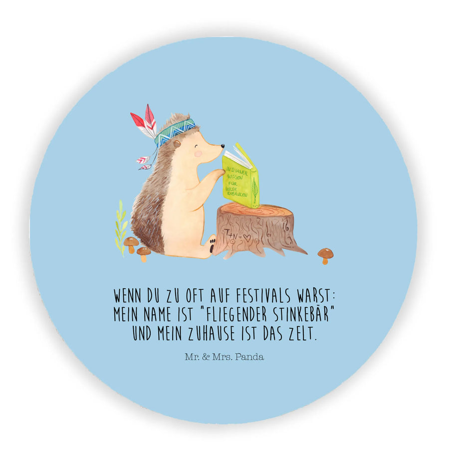 Rund Magnet Igel Indianer - mit Spruch - Blau Pastell