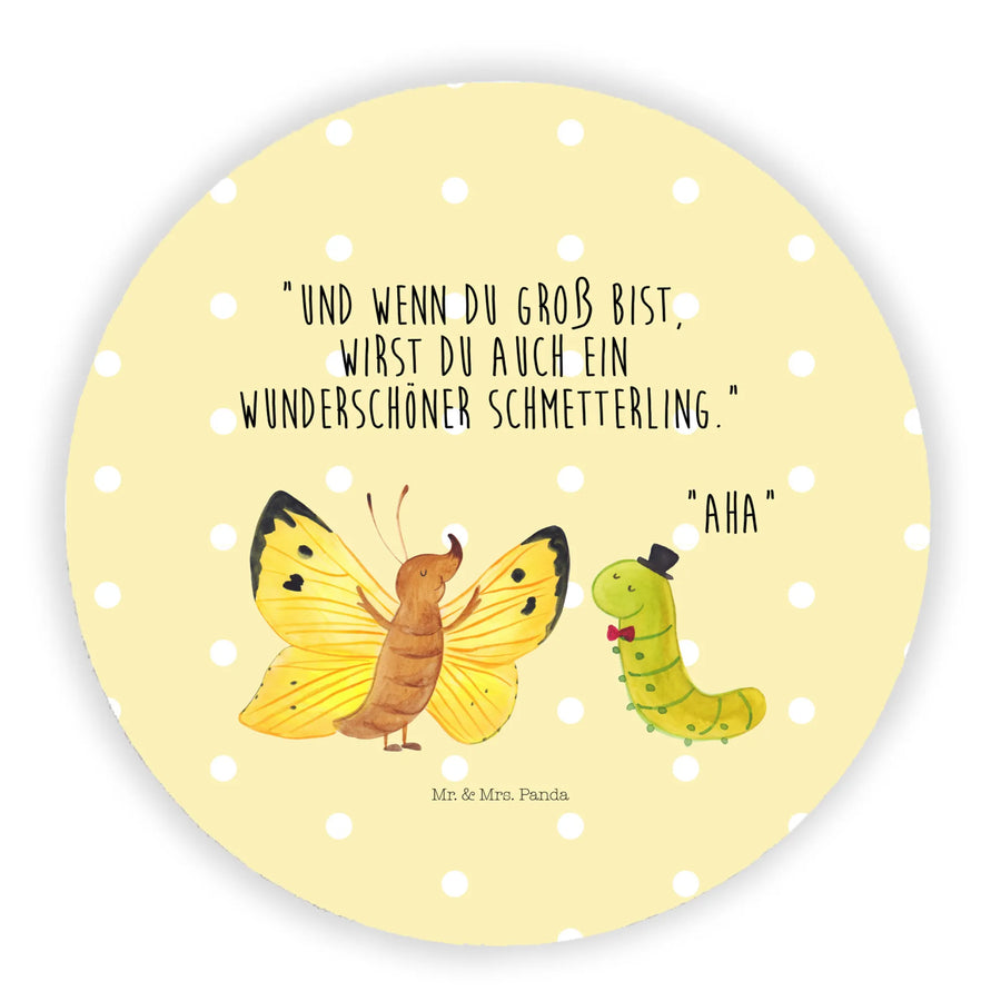 Rund Magnet Raupe & Schmetterling - mit Spruch - Gelb Pastell
