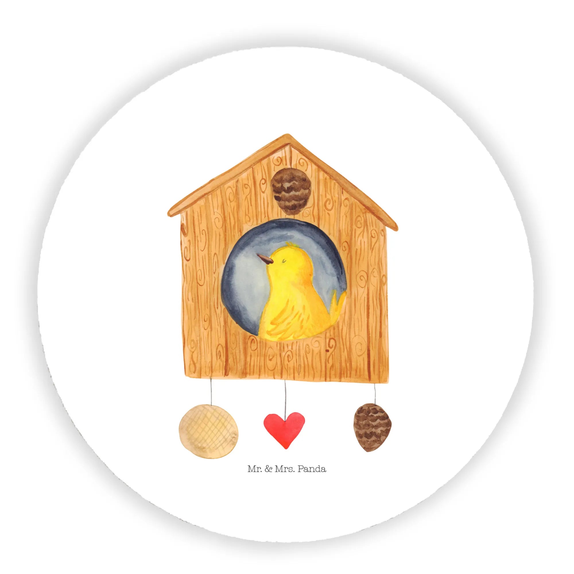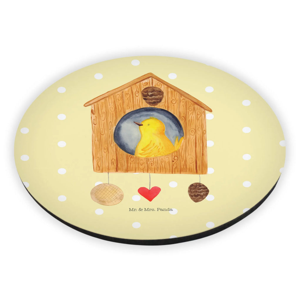 Hol dir ein Stück Gemütlichkeit nach Hause: Der runde Magnet "Vogelhaus sweet Home" von Mr. & Mrs. Panda bringt mit seinem zufriedenen, gelben Vogel sofort gute Laune in Küche, Büro oder Kinderzimmer. Das Motiv stammt aus der liebevollen Small World-Kollektion, in der Mrs. Panda viele zauberhafte Tiermotive im Aquarellstil gezeichnet hat.