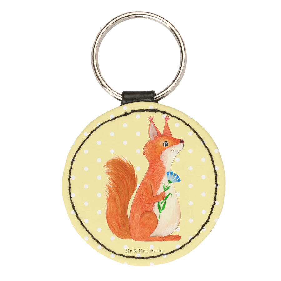 Rund Schlüsselanhänger Eichhörnchen Blume - Gelb Pastell
