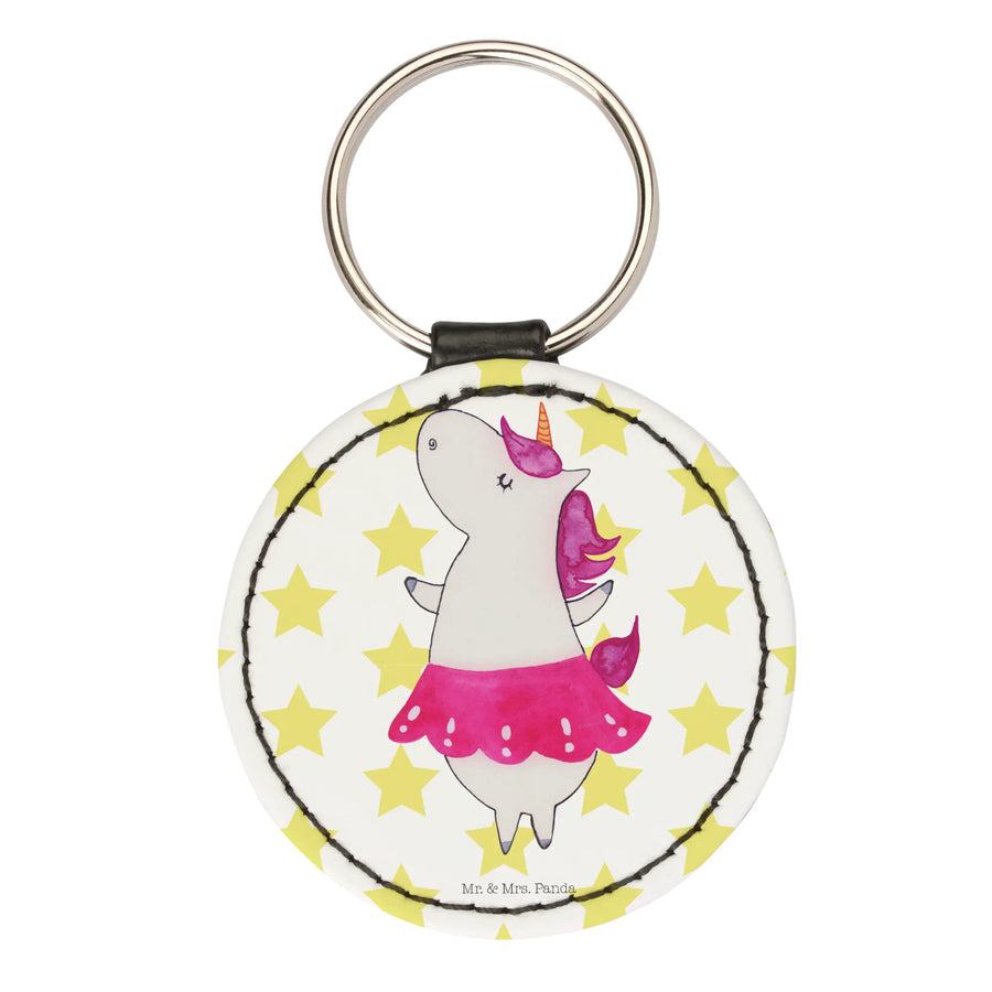 Rund Schlüsselanhänger Einhorn Ballerina - Weiß