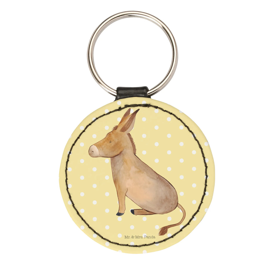 Rund Schlüsselanhänger Esel - Gelb Pastell