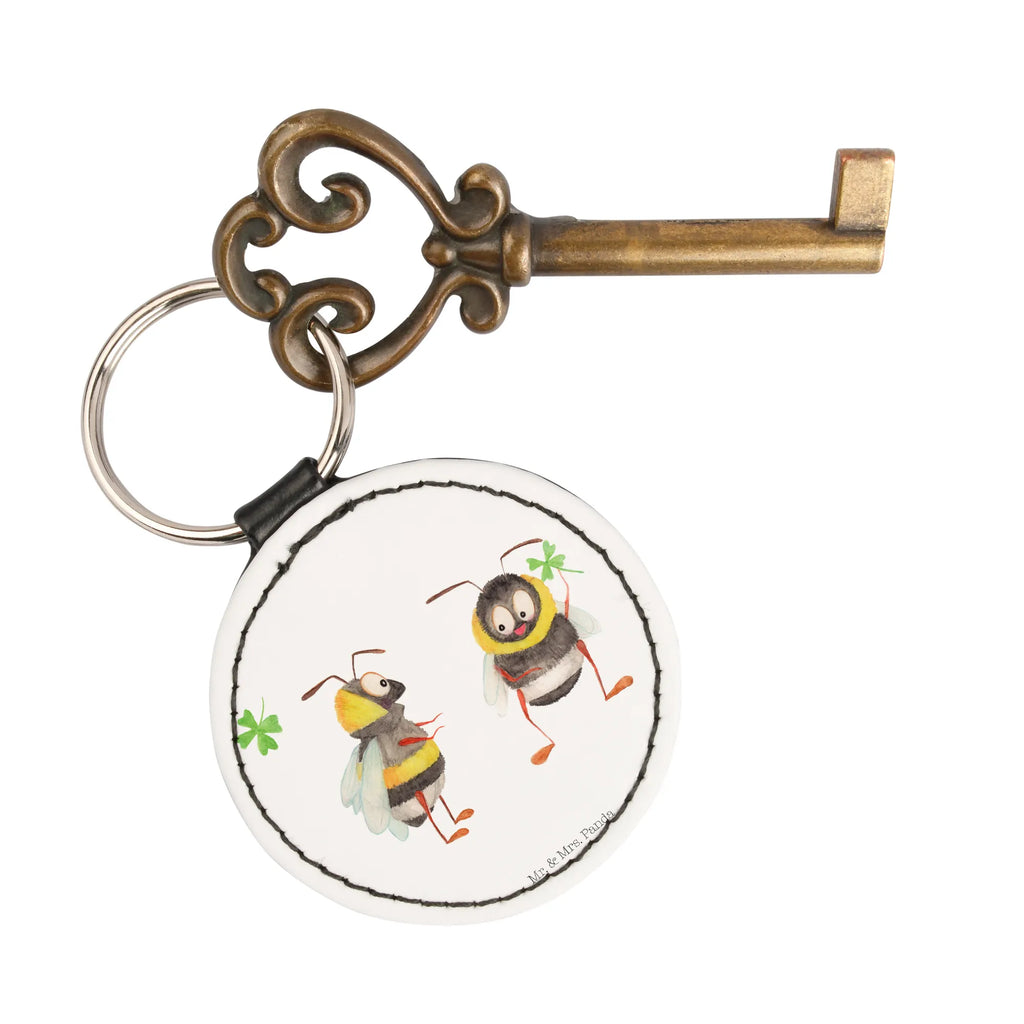 Rund Schlüsselanhänger Hummeln mit Kleeblatt - Weiß