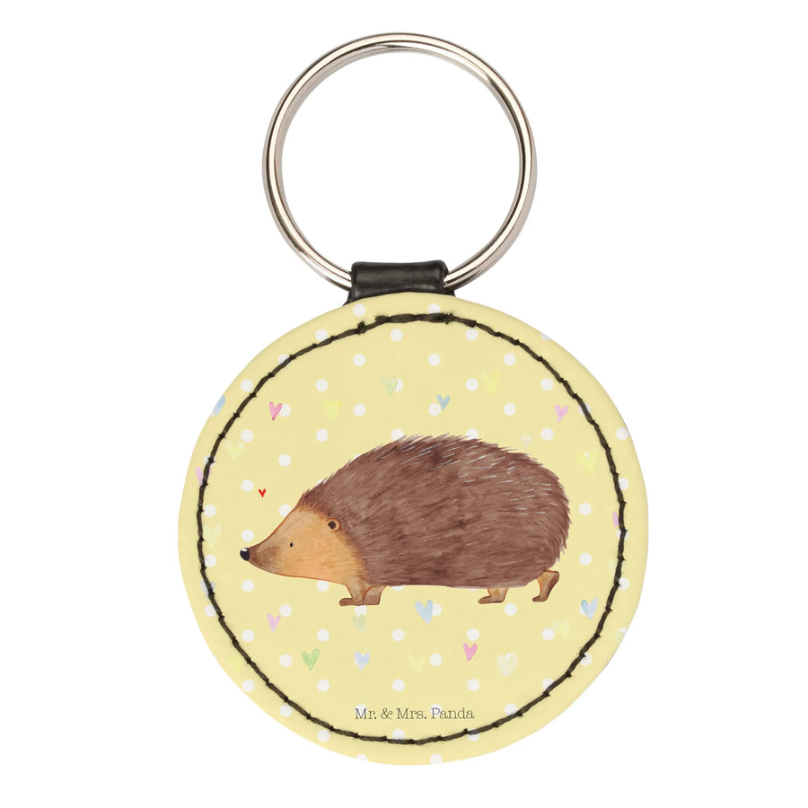 Rund Schlüsselanhänger Igel Herzen - Gelb Pastell