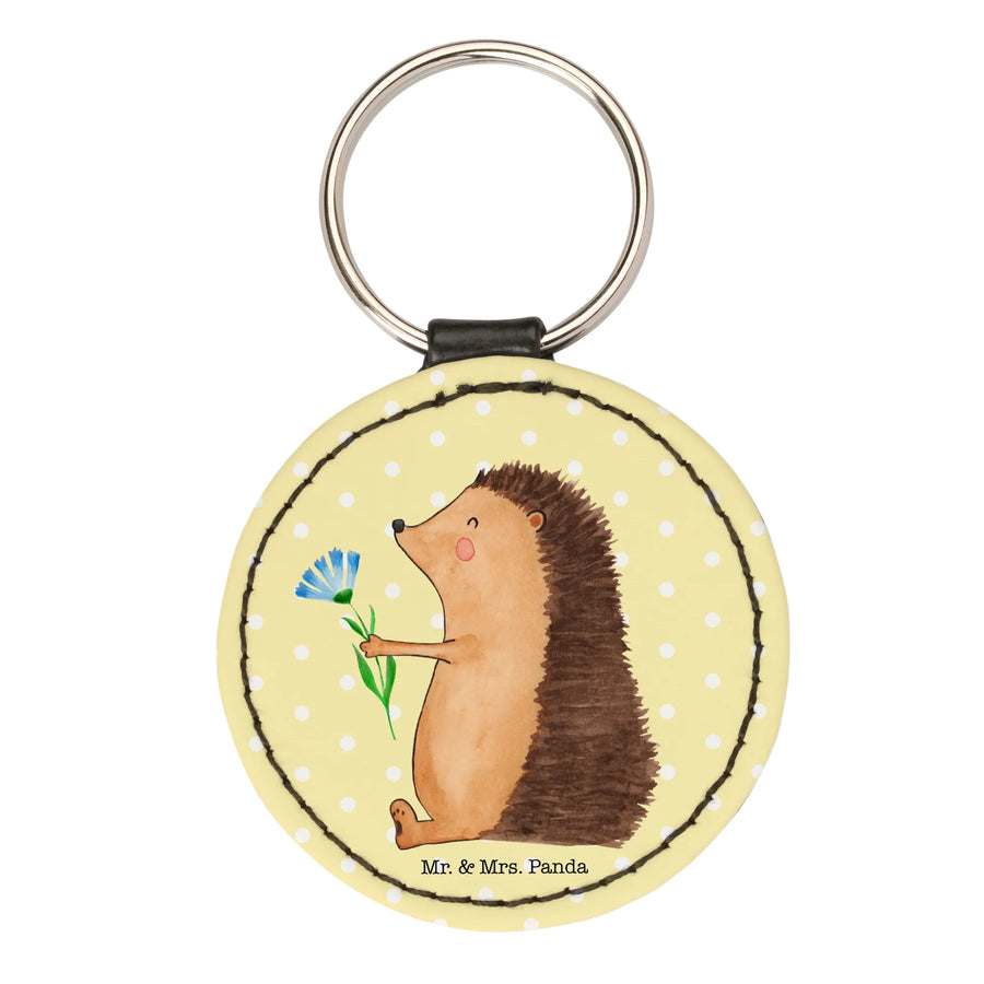 Rund Schlüsselanhänger Igel Blumen - Gelb Pastell