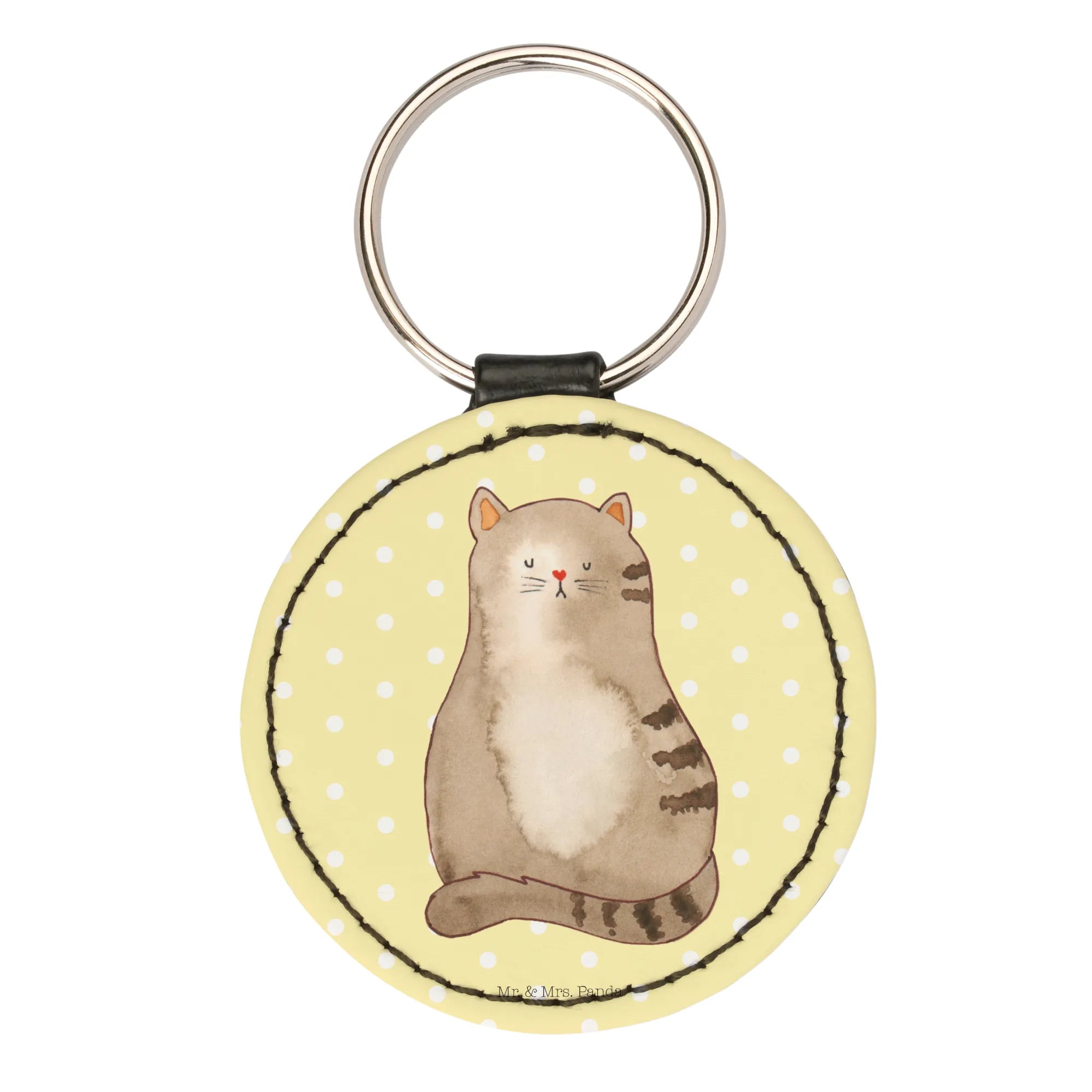Rund Schlüsselanhänger Katze Sitzen - Weiß