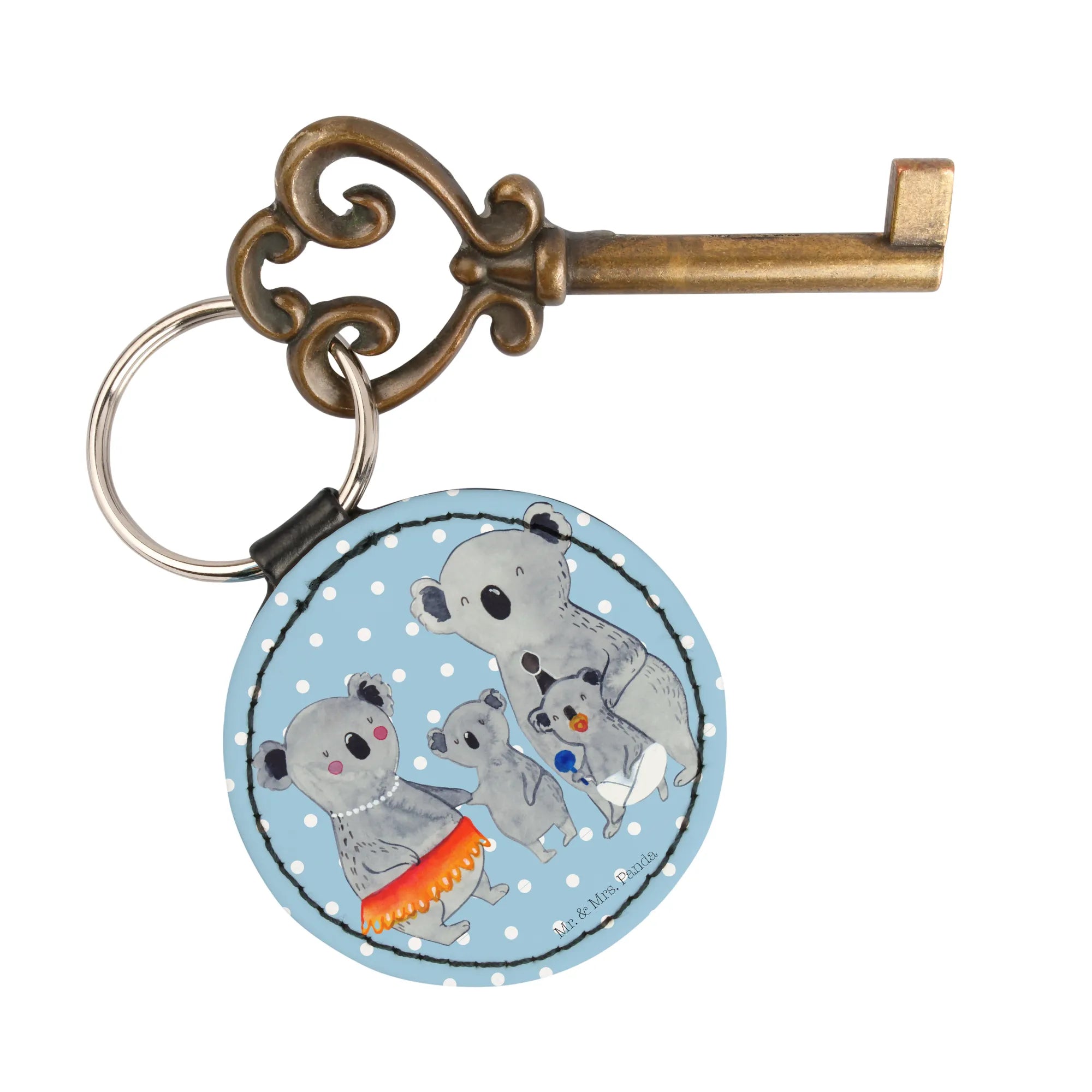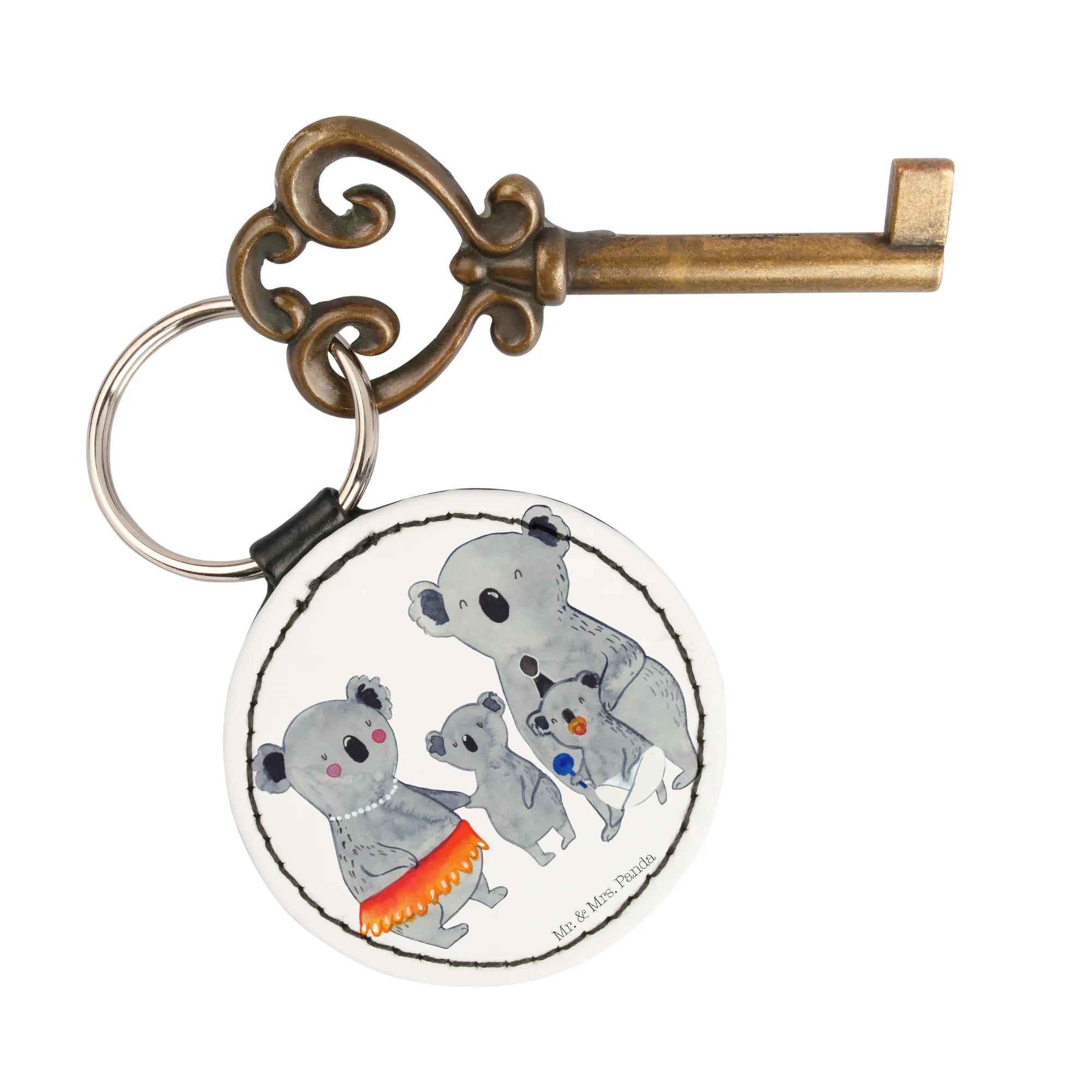 Rund Schlüsselanhänger Koala Familie - Weiß
