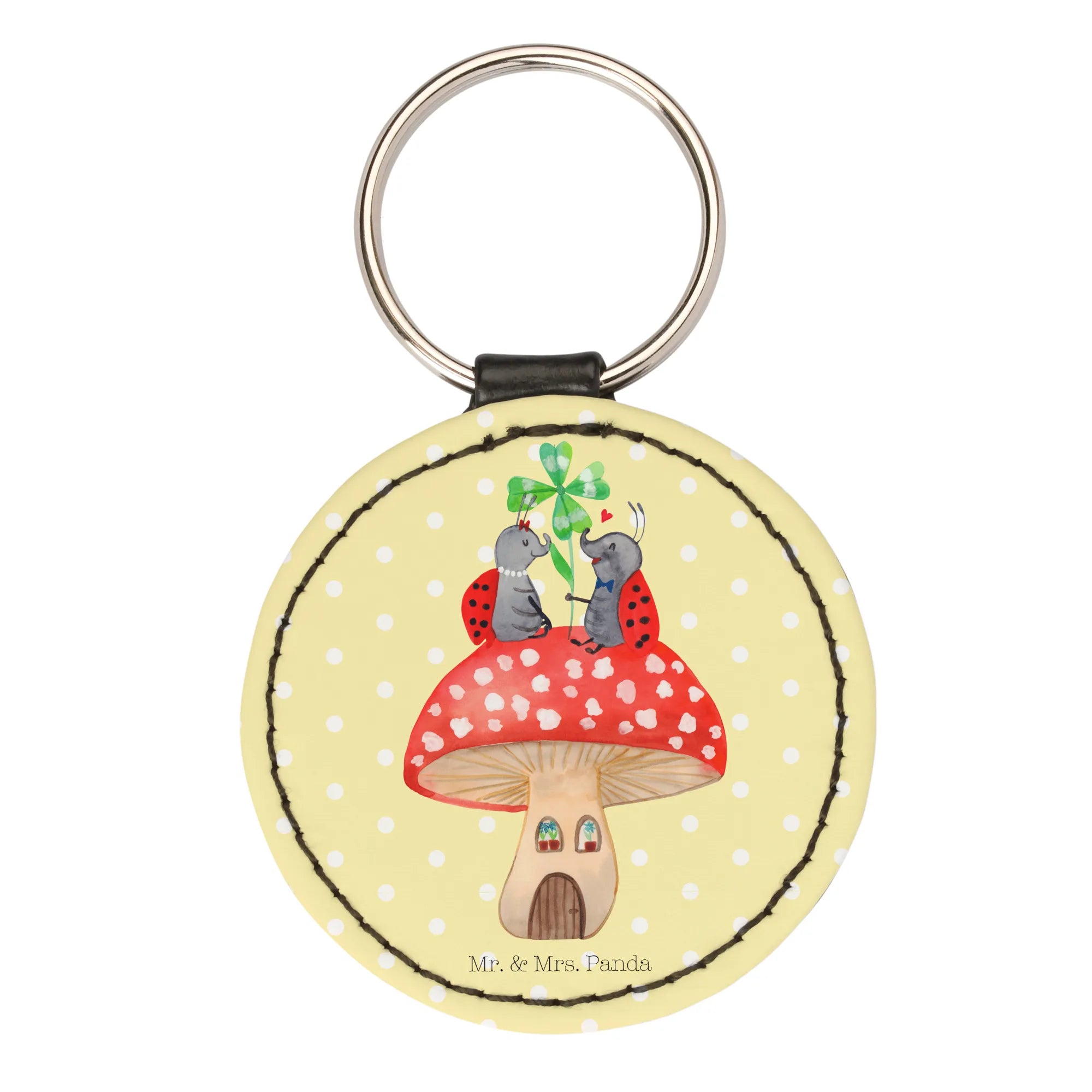 Rund Schlüsselanhänger Marienkäfer Paar Fliegenpilz - Weiß