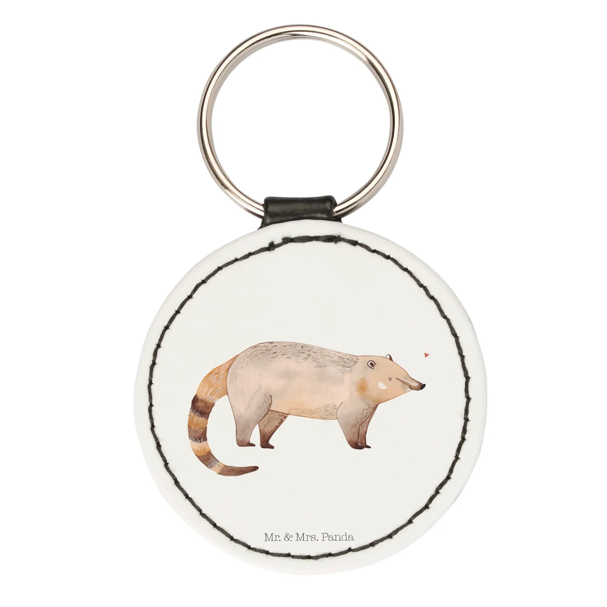 Rund Schlüsselanhänger Nasenbaer - Weiß