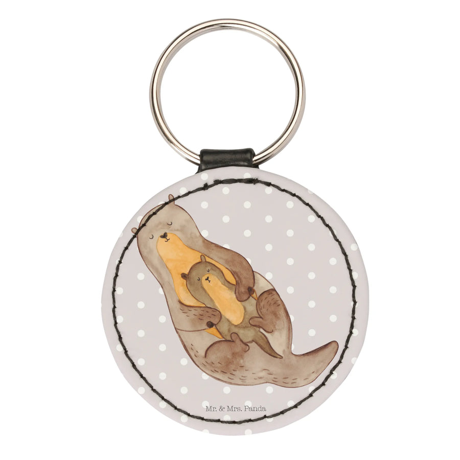 Rund Schlüsselanhänger Otter Kind - ohne Spruch - Grau Pastell