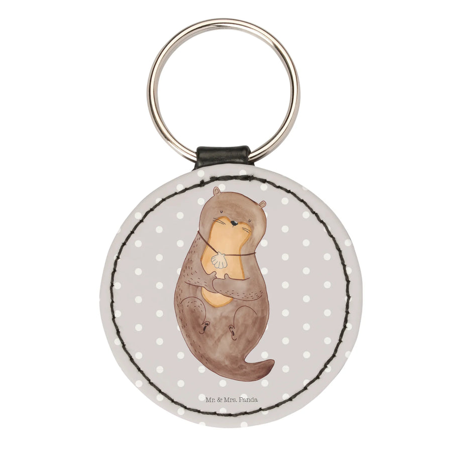 Rund Schlüsselanhänger Otter Muschel - ohne Spruch - Grau Pastell