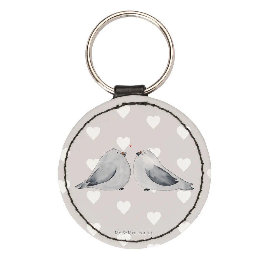 Rund Schlüsselanhänger Turteltauben Liebe - Grau Pastell
