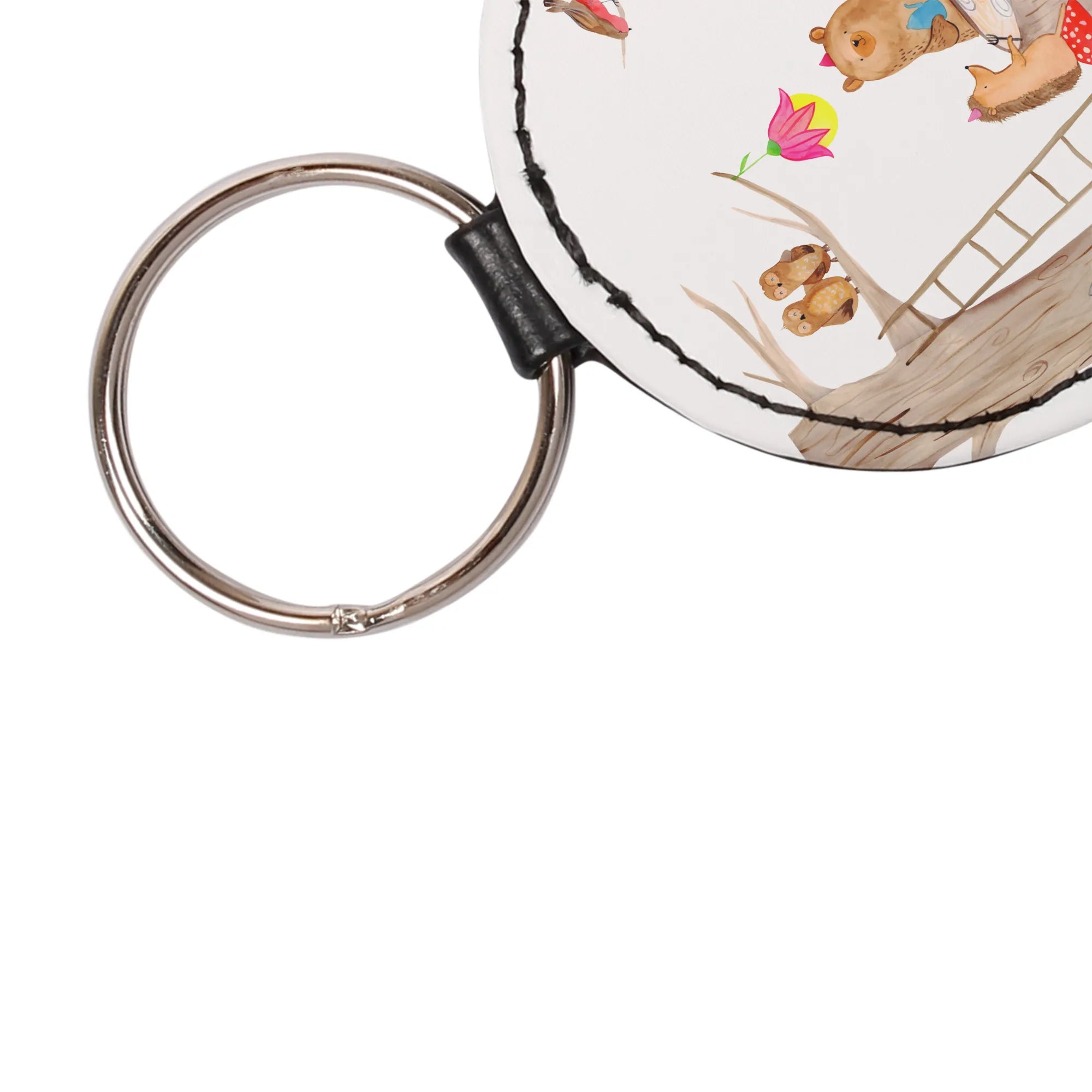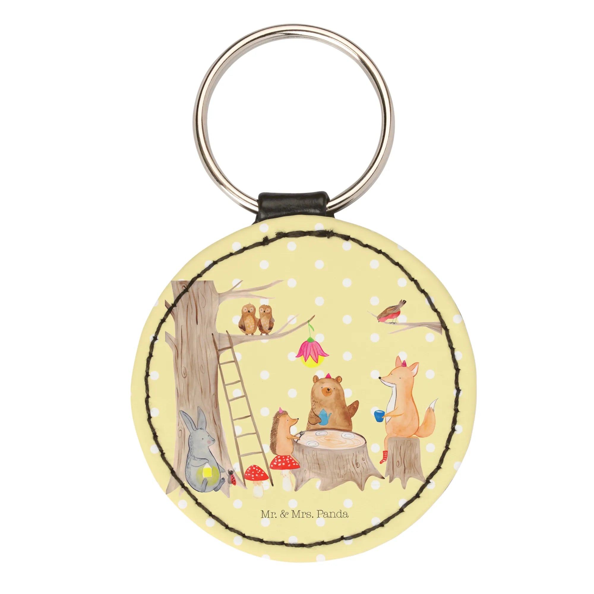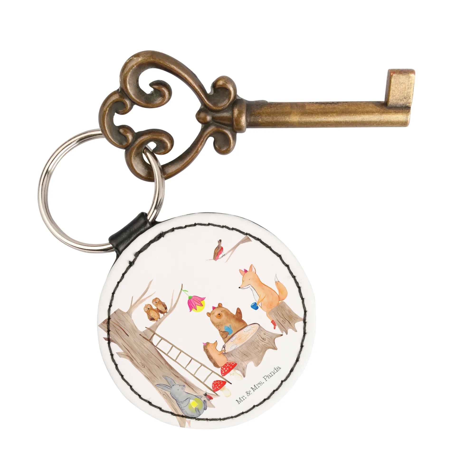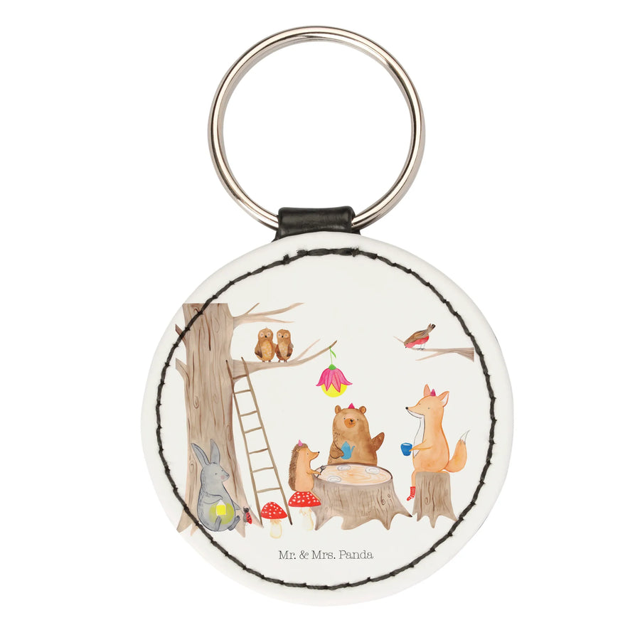 Rund Schlüsselanhänger Waldtiere Picknick - Weiß