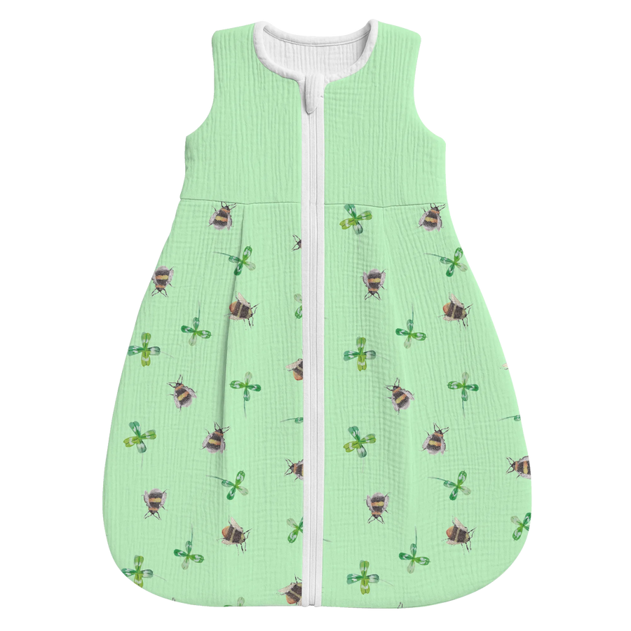 Schlafsack Baby Hummeln Kleeblatt Muster - 0. - 6. Monat - Musselin