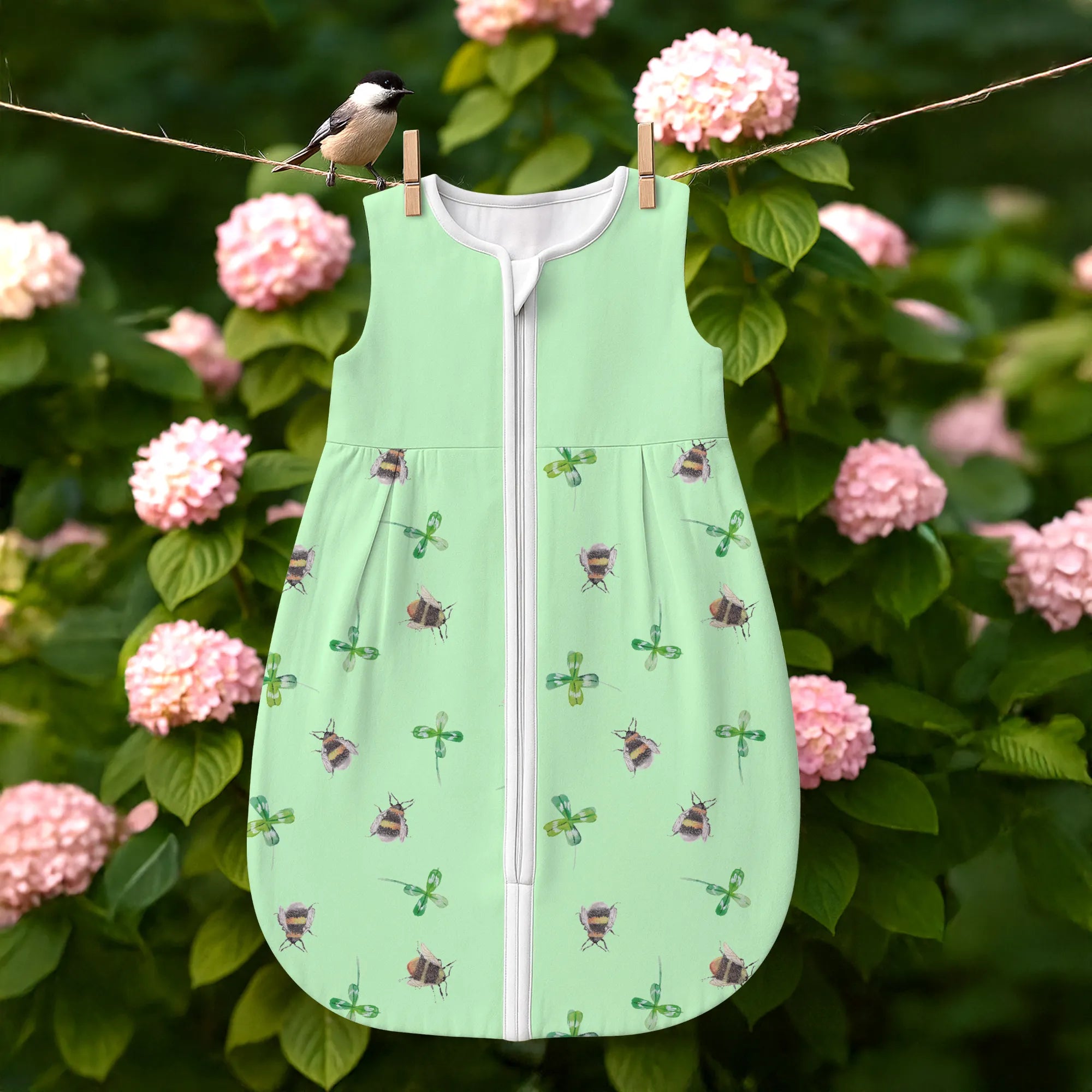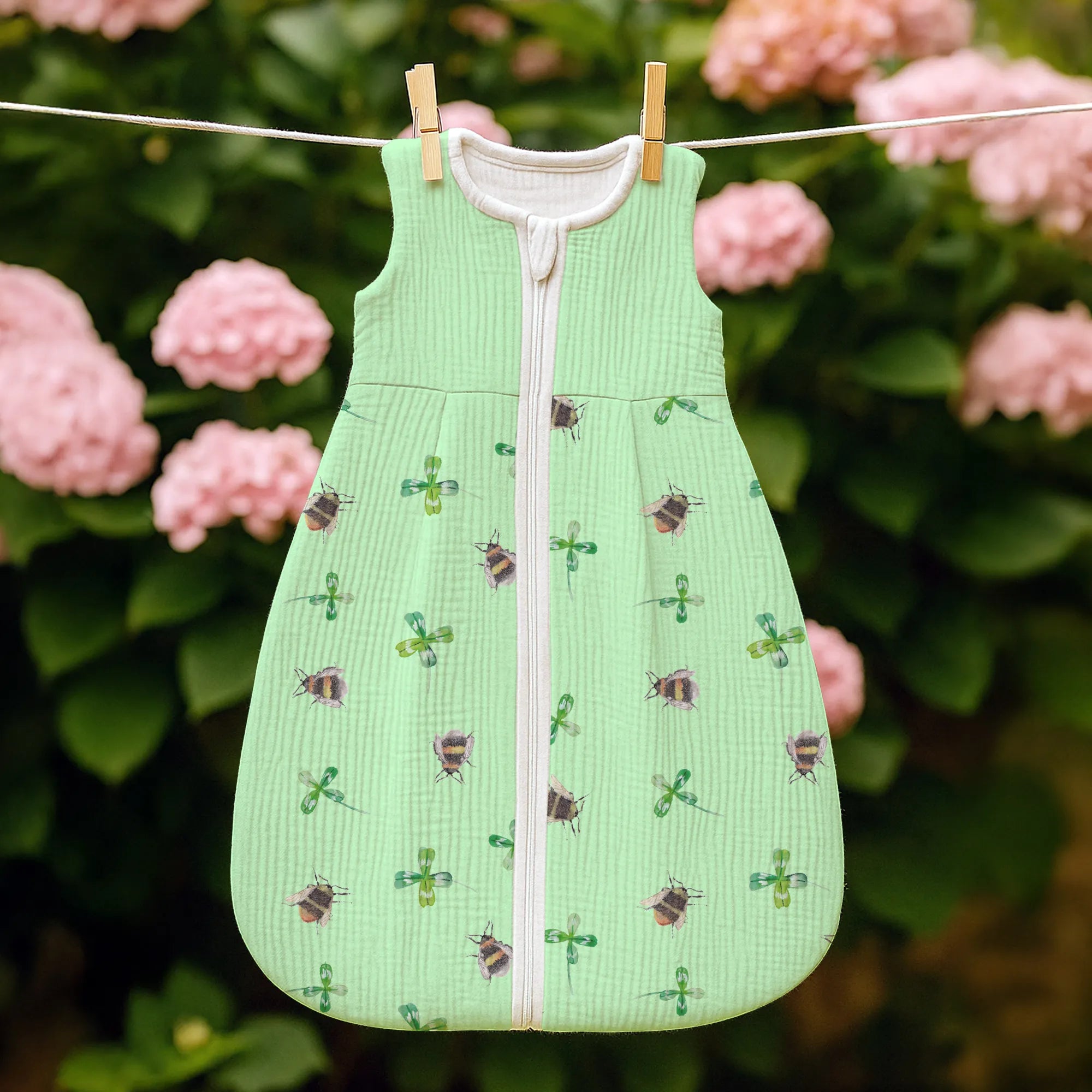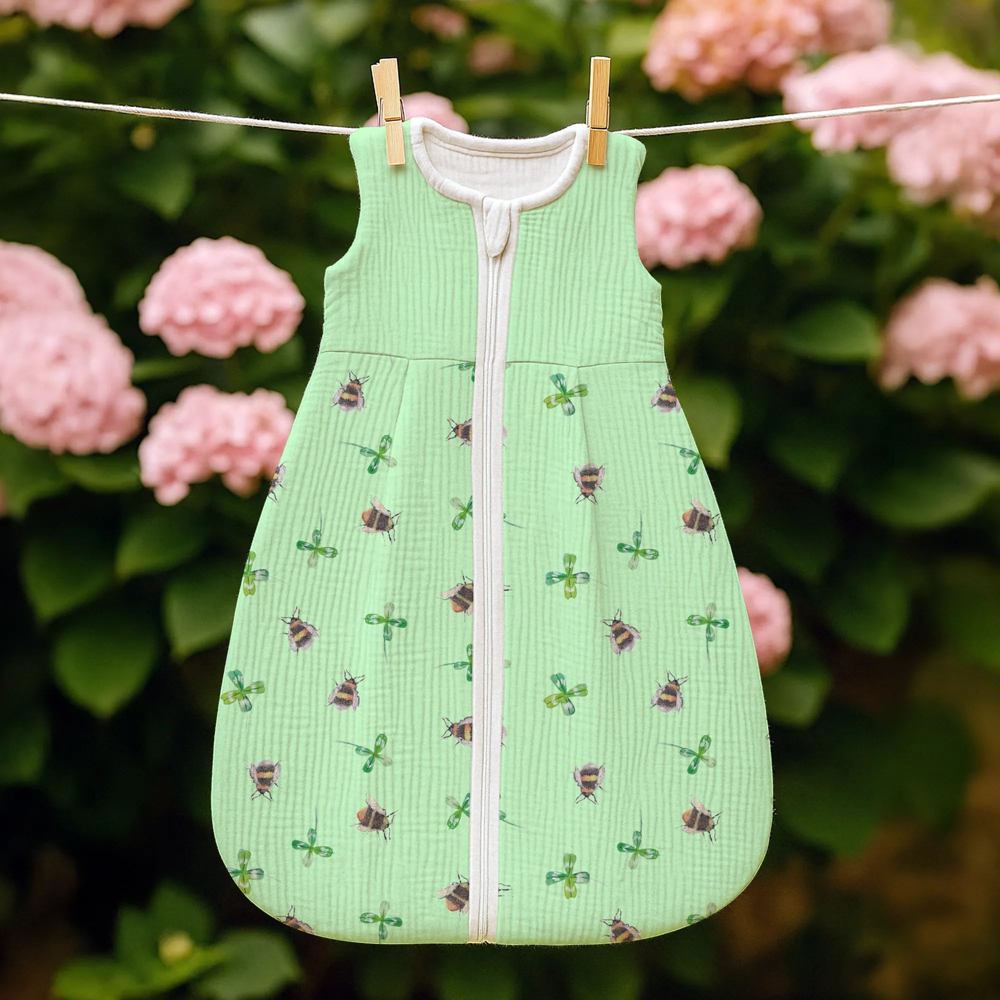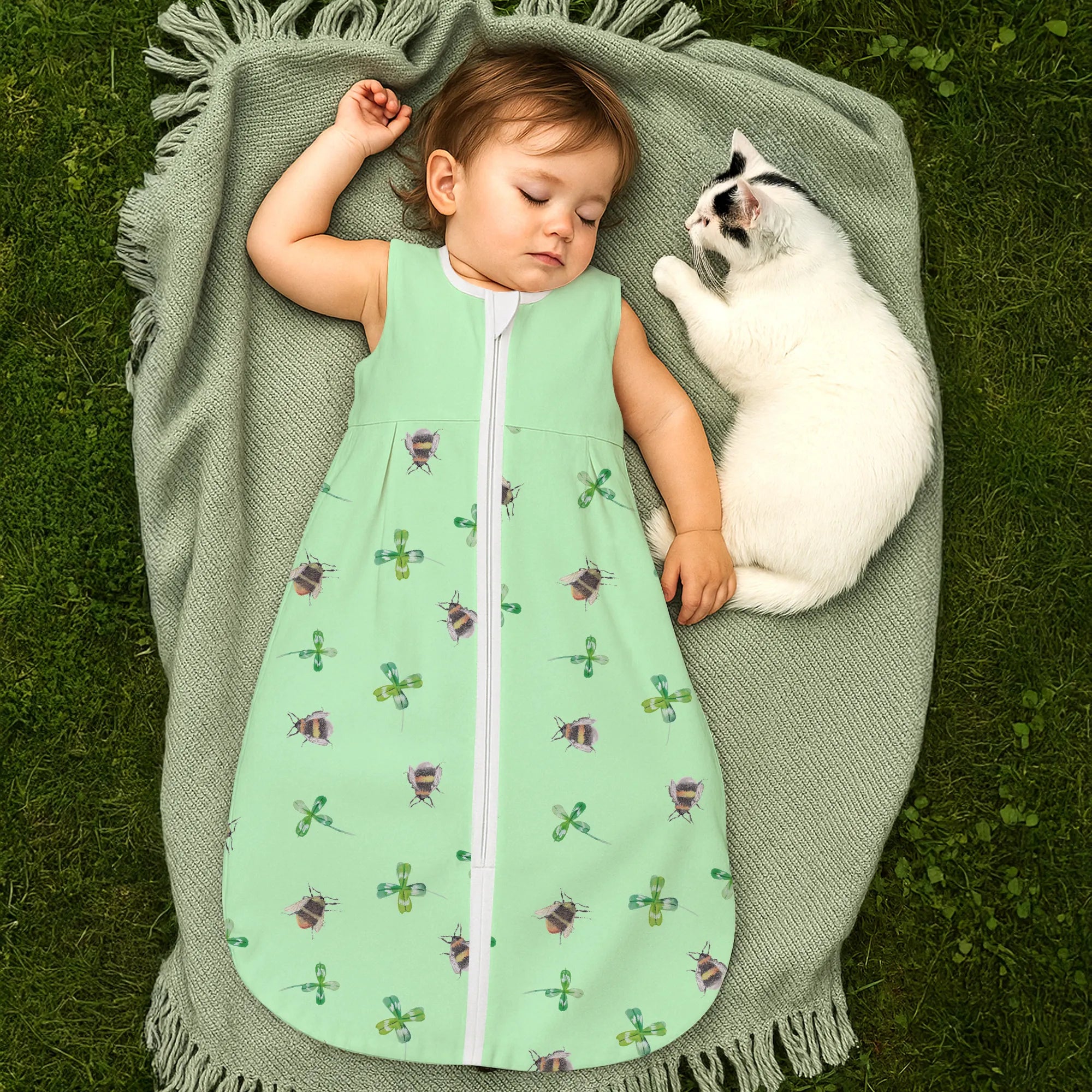 Wunderschöner Schlafsack Baby „Hummeln mit Kleeblatt“ – Small World Kollektion