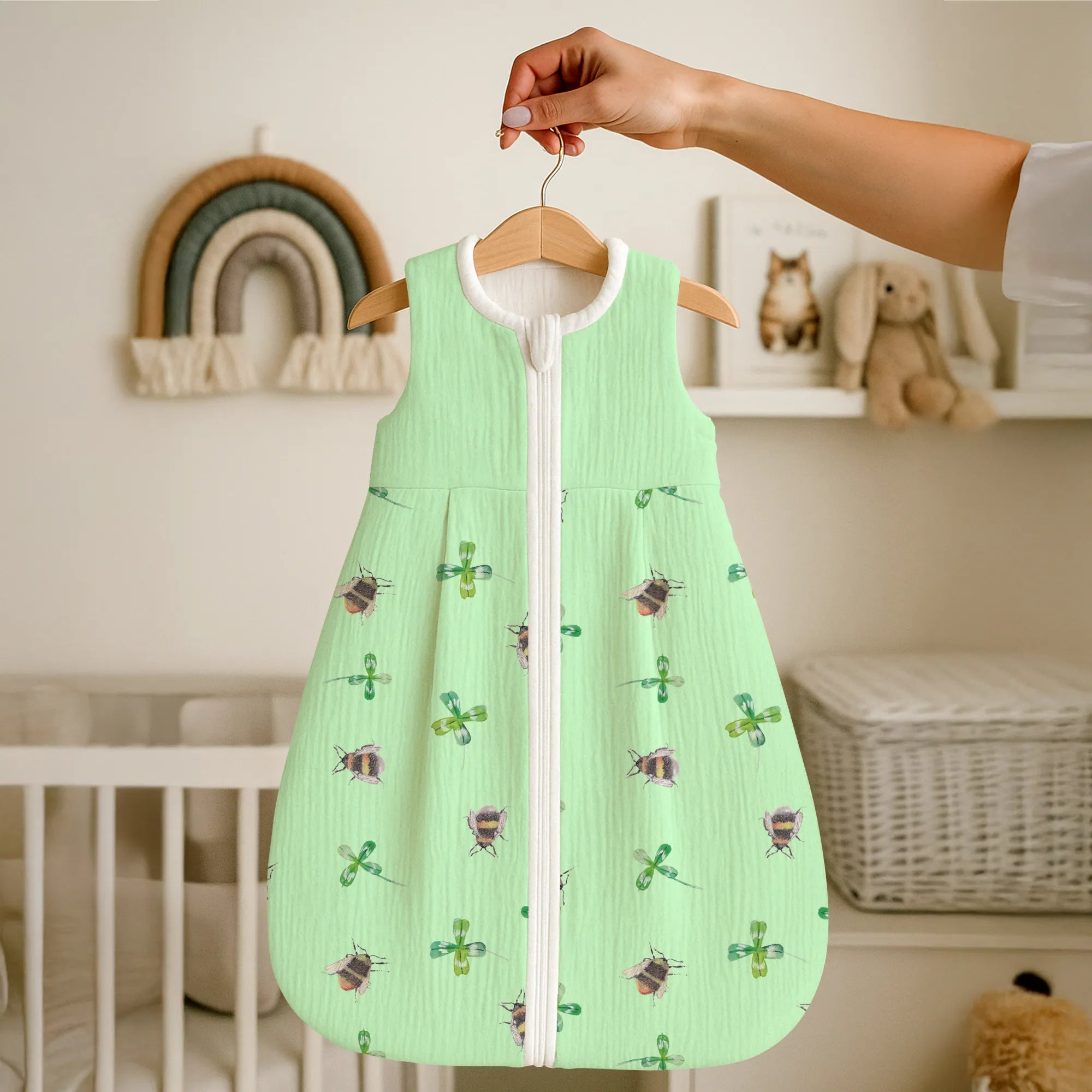 Dieser Babyschlafsack ist mehr als ein einfacher Schlafsack – er ist ein kleines Stück Glück, das Du verschenken kannst. Sag Hallo zu kuscheligen Nächten und fröhlichen Tagen mit unserem Hummeln mit Kleeblatt Schlafsack!