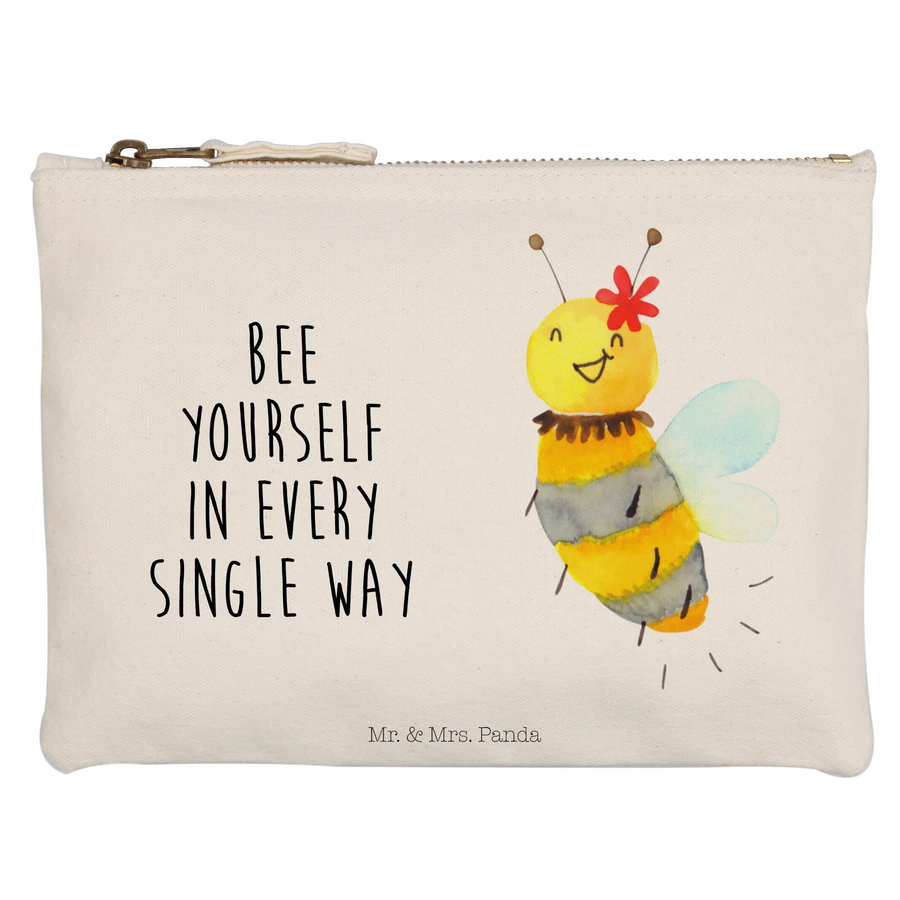 Entdecke die zauberhafte Schminktasche Biene Blume von Mr. & Mrs. Panda, die perfekte Wahl für alle, die das Leben bunt und fröhlich gestalten wollen! Diese hochwertige Kosmetiktasche aus 100% weicher Baumwolle ist nicht nur praktisch, sondern auch ein echter Hingucker. Mit ihrem niedlichen Motiv einer süßen Biene, die vital durch einen bunten Blumenwald fliegt, versprüht sie eine charmante Leichtigkeit, die jeden Tag versüßt. Die Schminktasche bietet genügend Platz für all deine Makeup-Artikel, Kosmetikbeutel oder Stiftemäppchen. Perfekt für den Alltag, Reisen oder einfach als stylisches Accessoire für dein Zuhause.