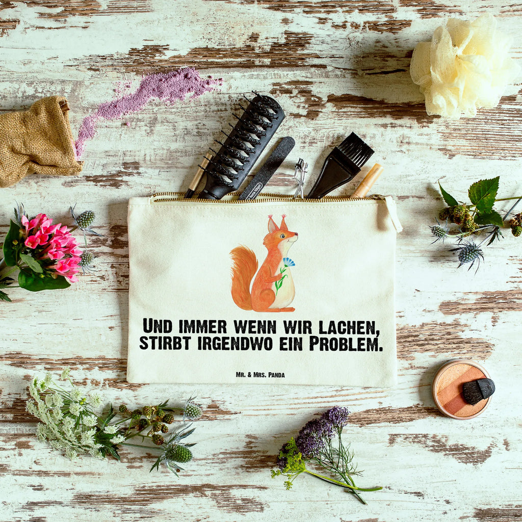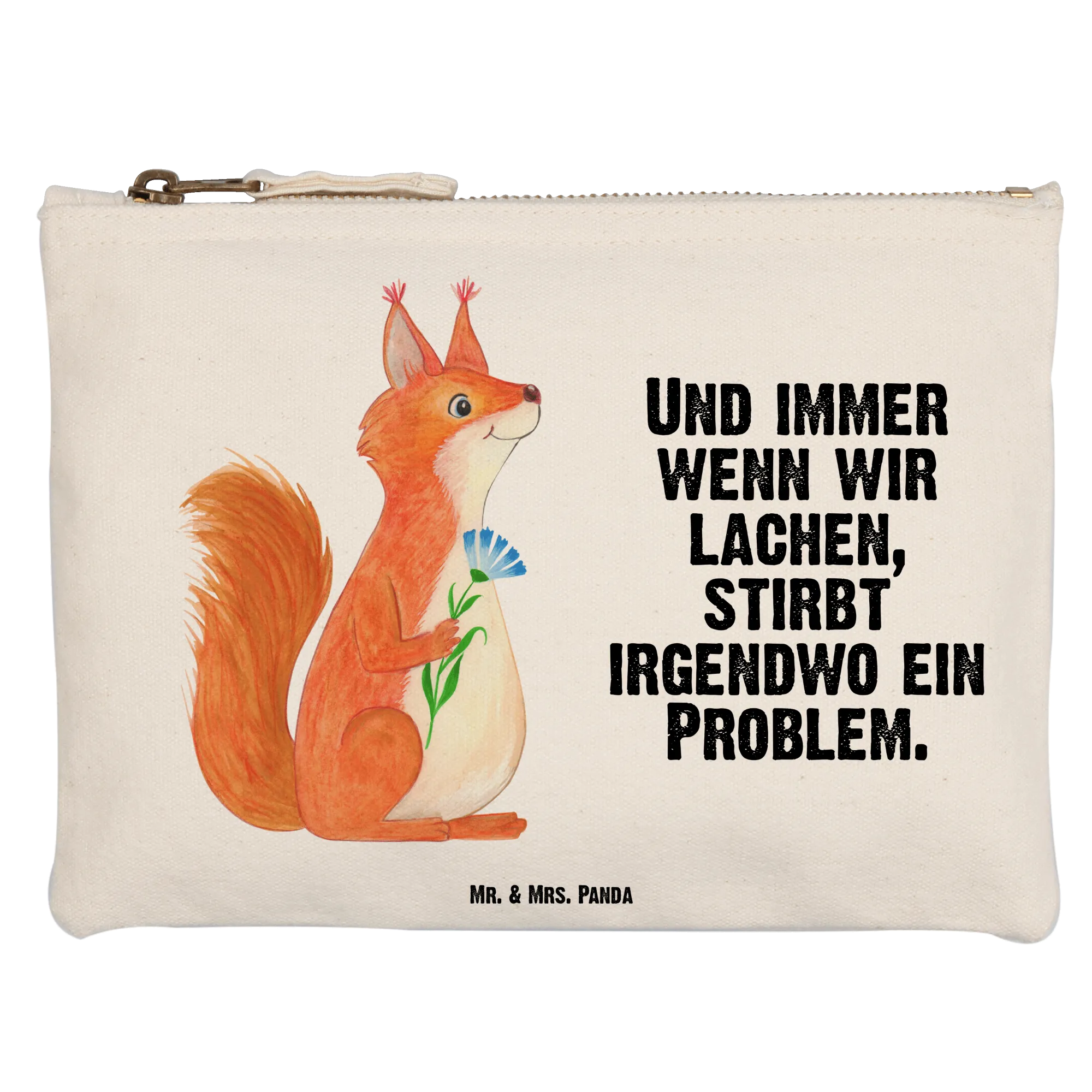 Entdecke die bezaubernde Schminktasche Eichhörnchen Blume aus der wundervollen Small World Kollektion von Mr. & Mrs. Panda! Diese einzigartige Kosmetiktasche ist mehr als nur ein praktischer Begleiter. Mit ihrem liebevoll gezeichneten Eichhörnchen, das fröhlich eine Blume in der Hand hält, zaubert sie jedem ein Lächeln ins Gesicht. Die positive Botschaft "Und immer wenn wir lachen, stirbt irgendwo ein Problem" bringt gute Laune und Motivation in deinen Alltag.