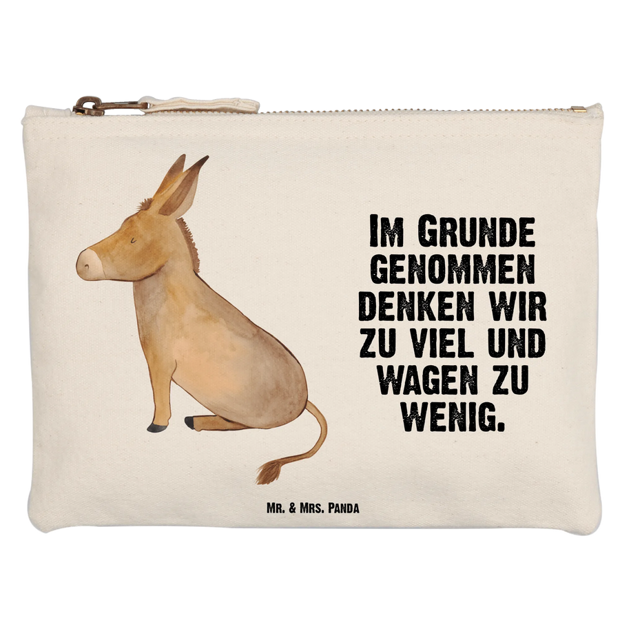 Entdecke die zauberhafte Schminktasche mit dem lustigen Esel-Motiv von Mr. & Mrs. Panda! Diese einzigartige Kosmetiktasche ist mehr als nur ein praktisches Utensil – sie bringt Lebensmut und gute Laune in deinen Alltag. Mit dem Spruch "Im Grunde genommen denken wir zu viel und wagen zu wenig" erinnert sie dich daran, mutig zu sein und das Leben zu genießen. Zeitlose Weisheit und Lebensfreude vereinen sich in dieser wunderschönen Tasche, die nicht nur funktional, sondern auch ein echter Hingucker ist.