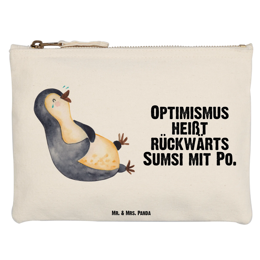 Entdecke die zauberhafte Schminktasche mit dem lachenden Pinguin aus der exklusiven Pinguin-Kollektion von Mr. & Mrs. Panda! Diese wunderschöne Kosmetiktasche ist nicht nur ein praktisches Accessoire für all deine Kosmetikartikel, sondern auch ein farbenfrohes Statement für Optimismus und Lebensfreude. Unser strahlender Pinguin bringt jeden zum Schmunzeln und erinnert dich daran, das Leben nicht zu ernst zu nehmen – denn schließlich bedeutet Optimismus rückwärts 'Sumsi mit Po'.